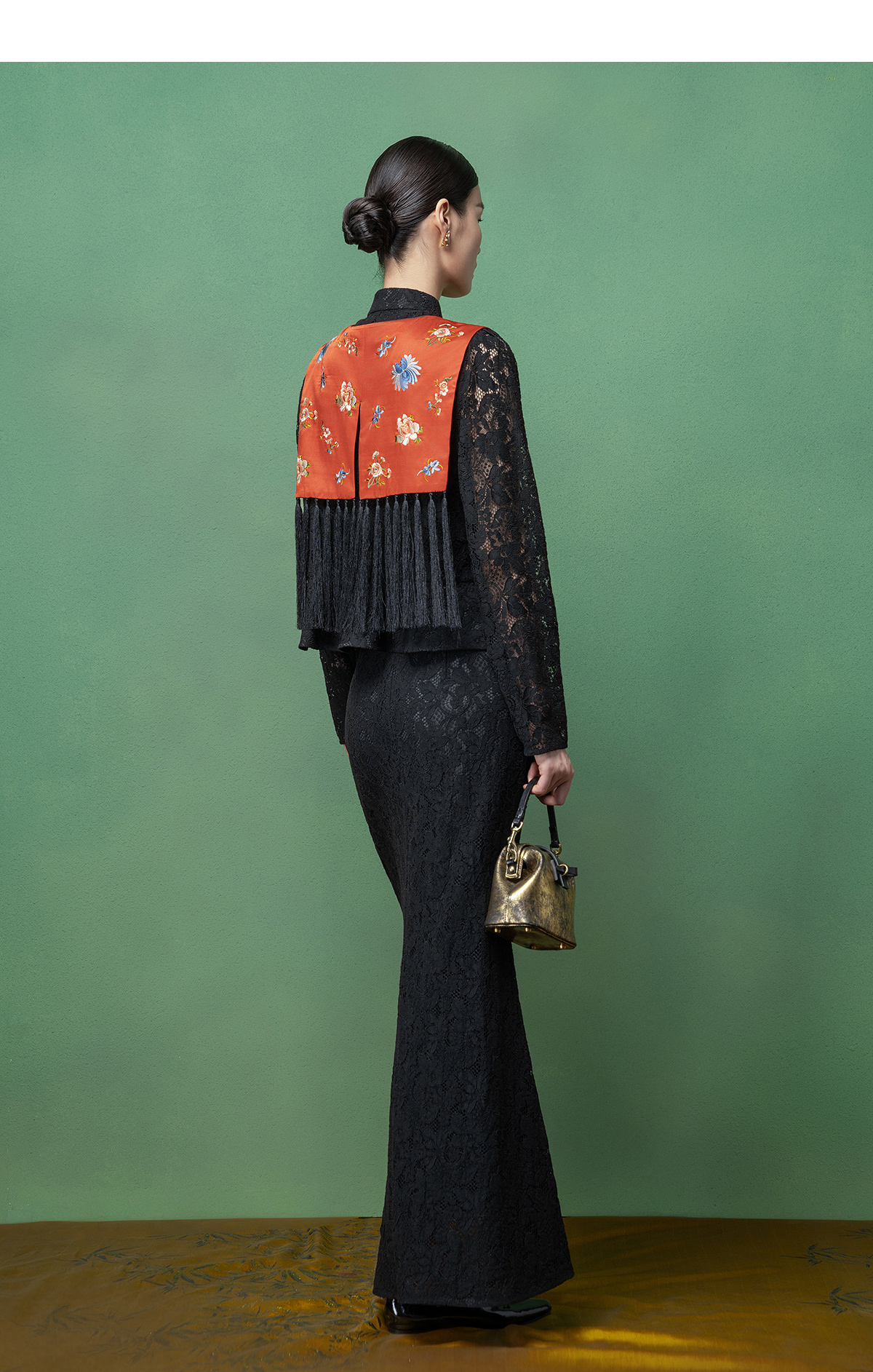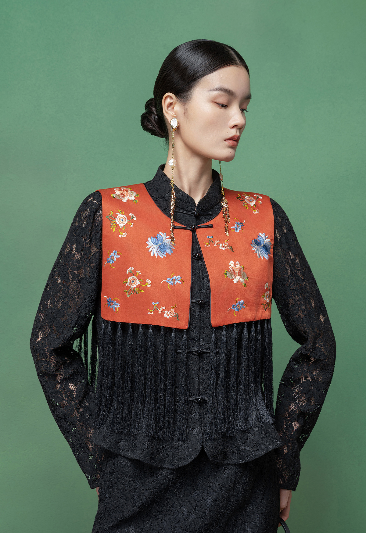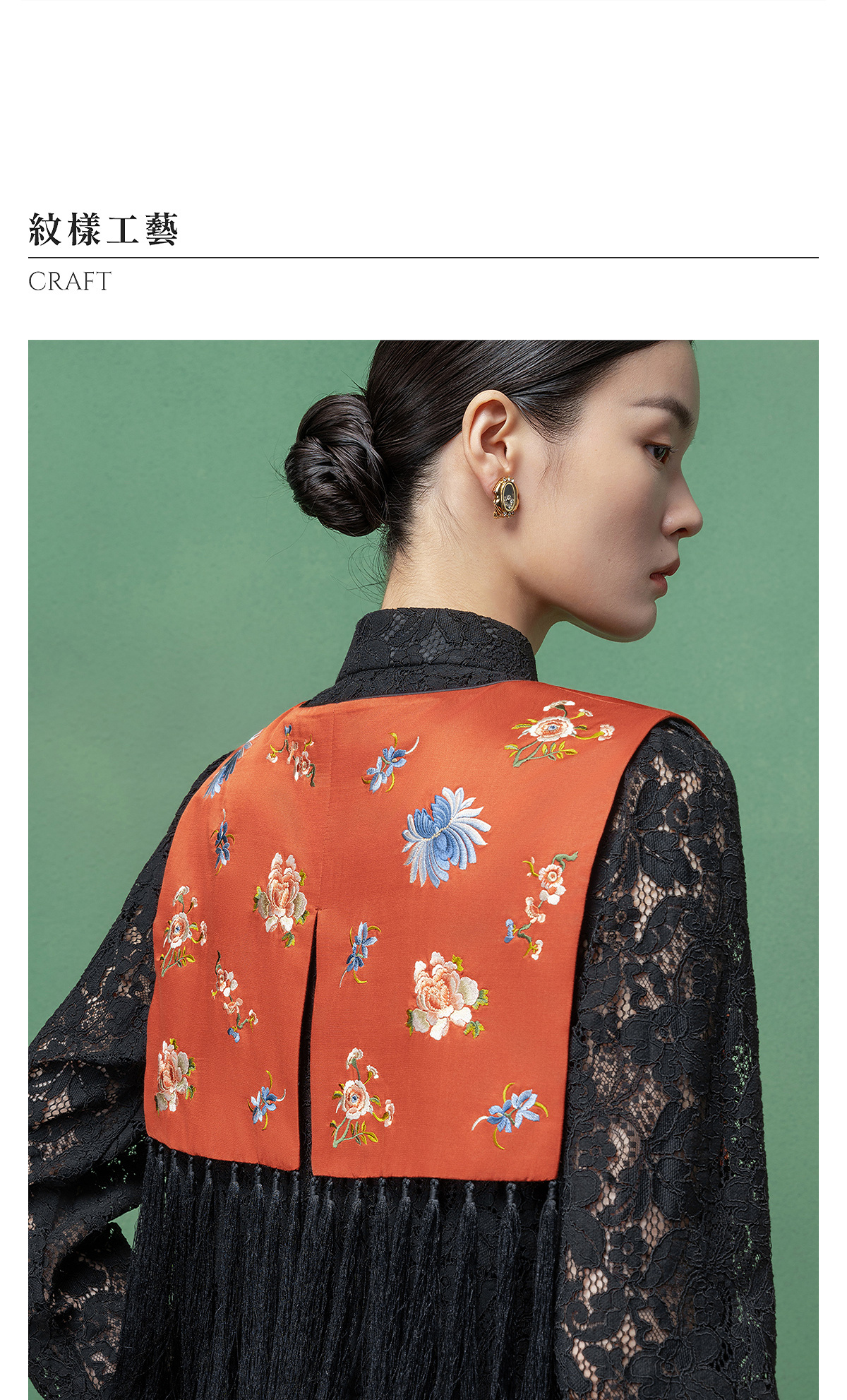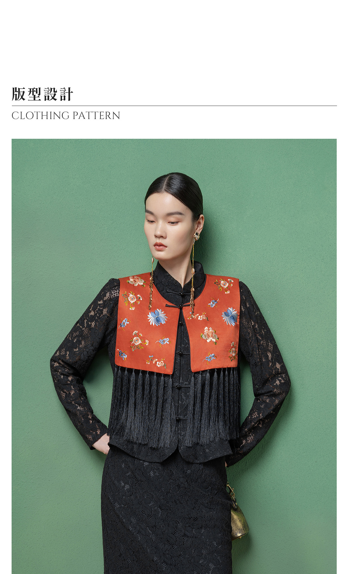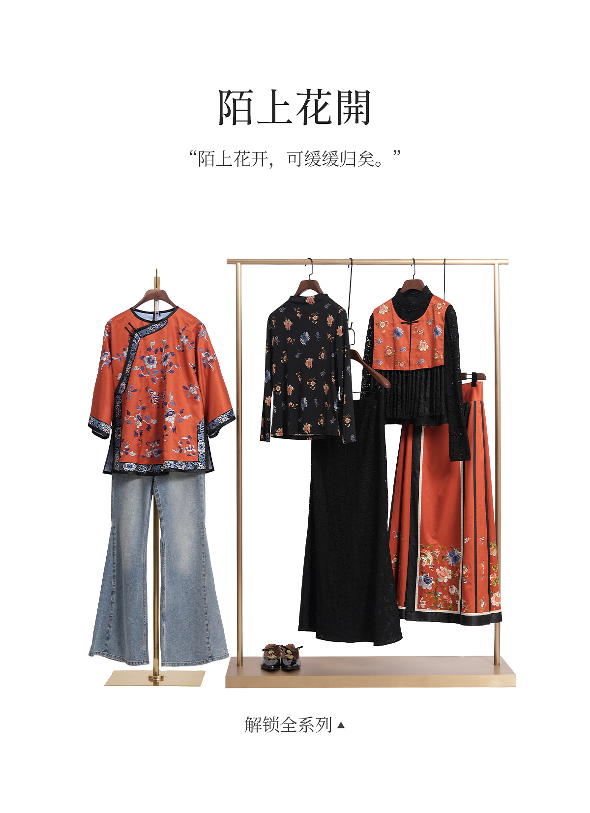 【林栖设计小店】拍行古董陌上花开|丝棉缎绣花橘红色云肩2026春新款马面裙马甲1961223