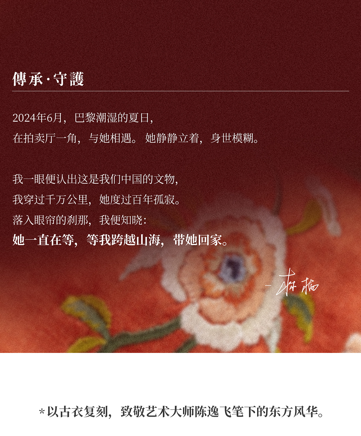 - hi~我是林栖 很高兴你也在关注和热爱着传统手工艺 我想让你穿上 用传统手工艺做出的、不输给国外奢侈品的衣服