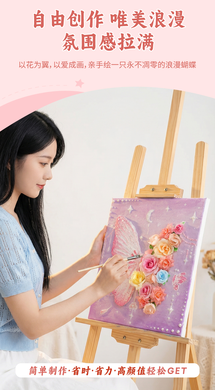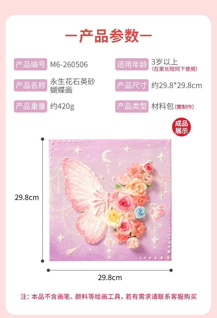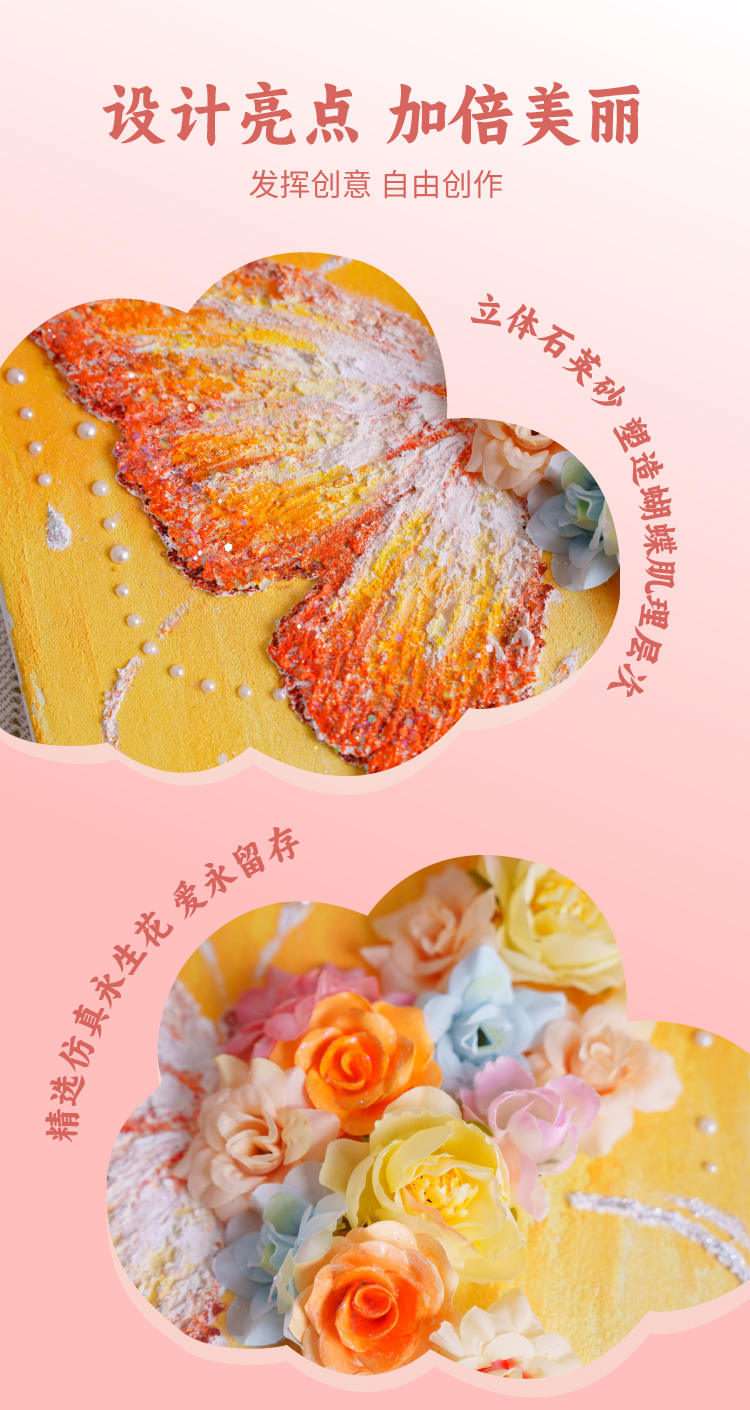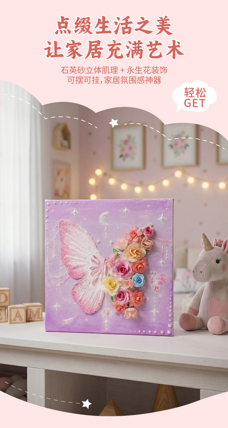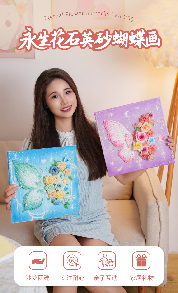 母亲节礼物永生花石英砂蝴蝶画手工diy儿童材料包幼儿园团建活动