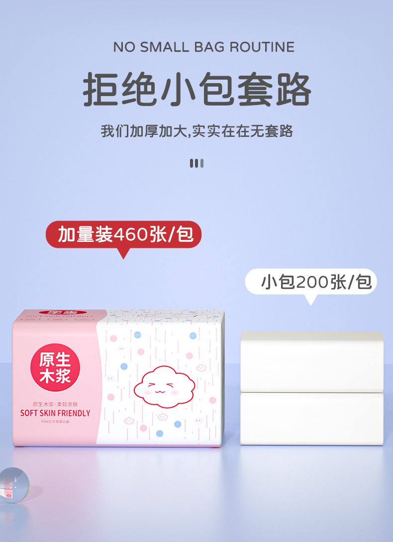 【原生木浆❗亲肤抽纸】60包460张抽纸加量囤货装家用实惠装整箱卫生纸巾餐巾面巾纸。rg