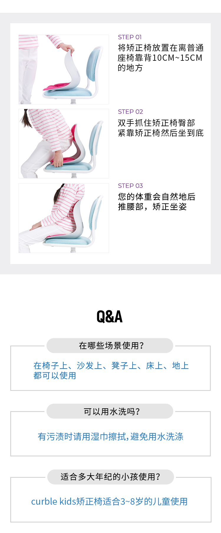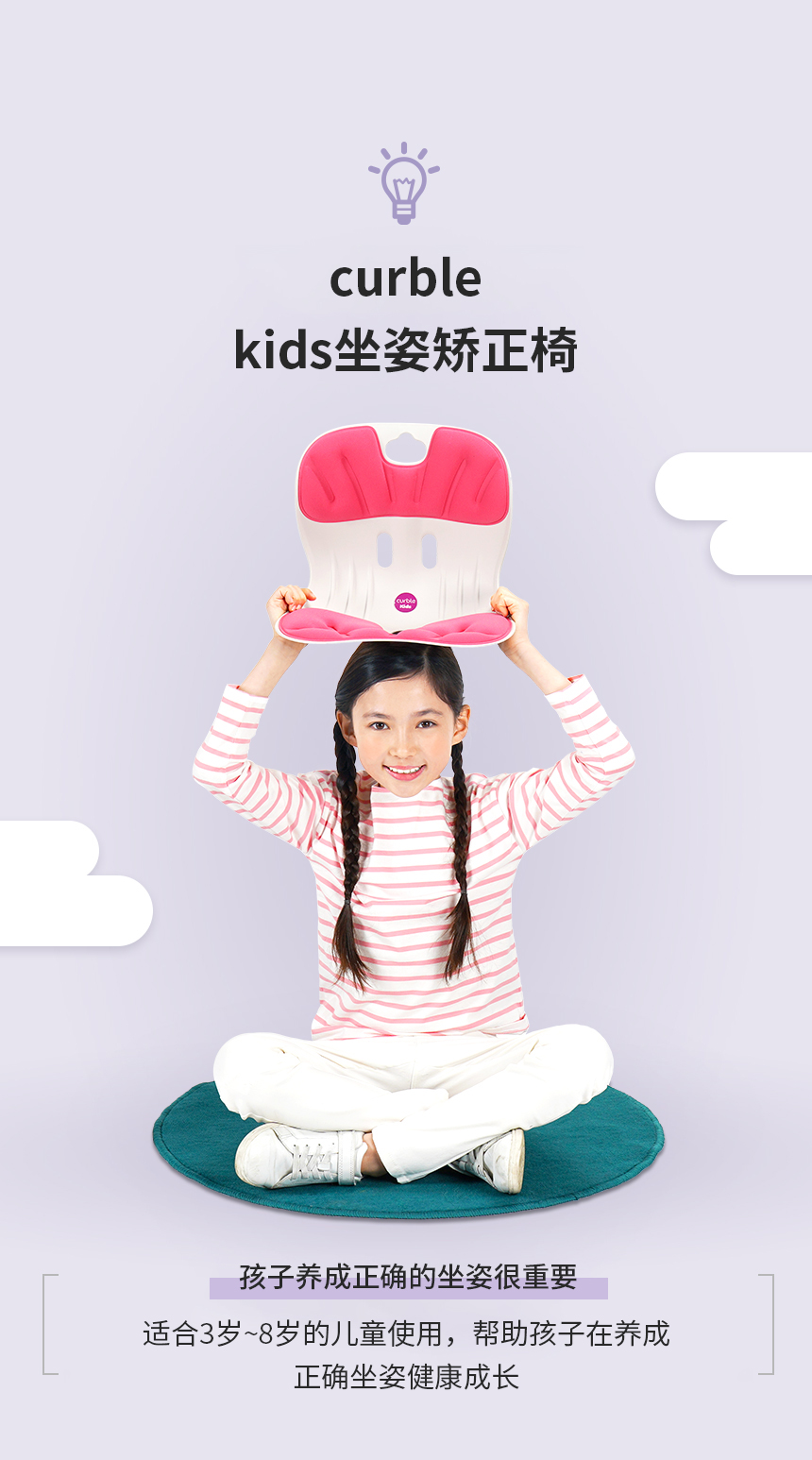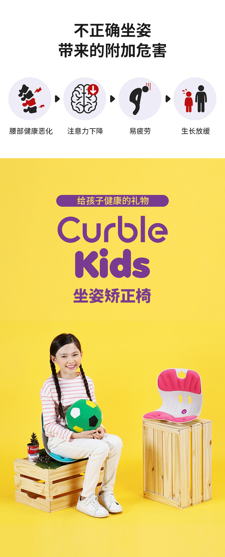 Kids系列 | 韩国进口curble可柔伴 儿童护腰坐垫 人体工学 学习久坐护腰椅 2~5岁(3色可选)