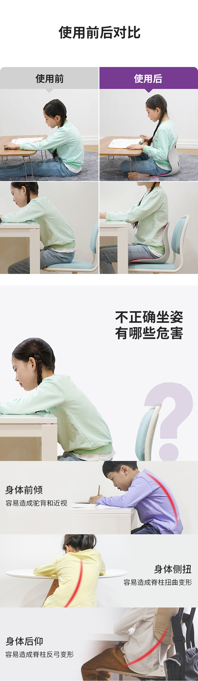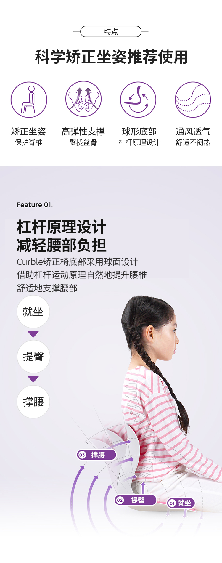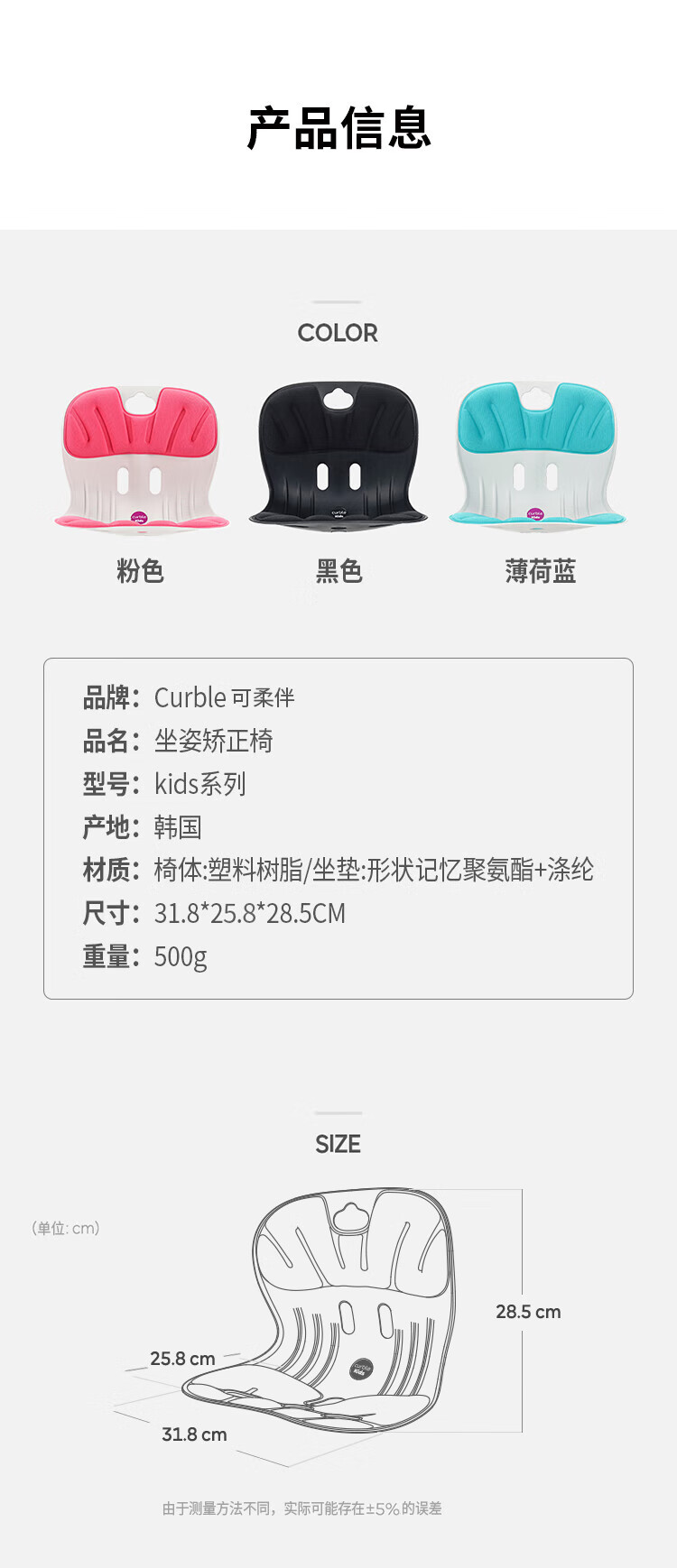 Kids系列 | 韩国进口curble可柔伴 儿童护腰坐垫 人体工学 学习久坐护腰椅 2~5岁(3色可选)