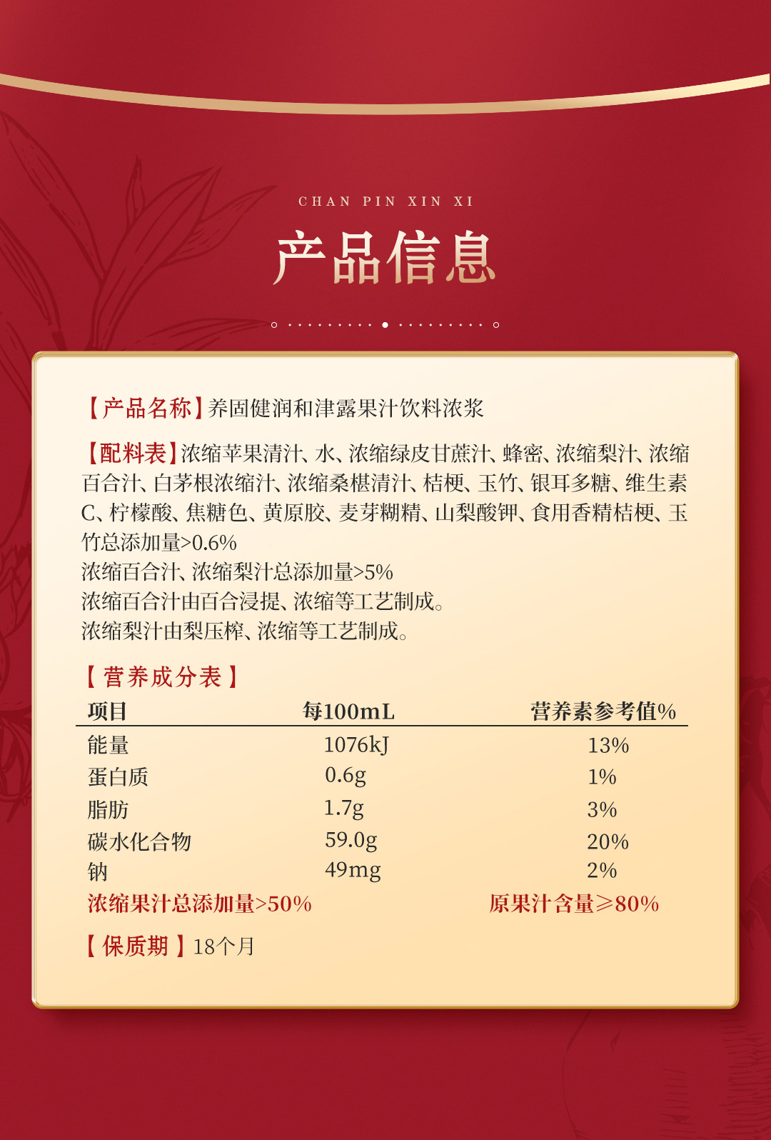 【预售 急单慎拍】无限极养固健润和津露果汁饮料浓浆 600ml/瓶 原价82元
