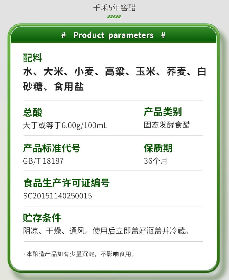 千禾5年窖醋 500ml/瓶