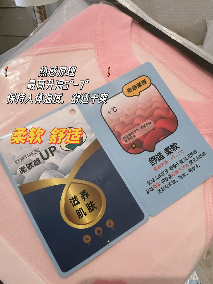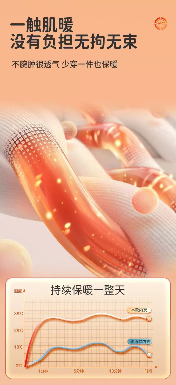 这款保暖套装即热速暖 上身身体一下就热了 柔软毛绒促织即暖,就像晒太阳一样 而且锁住温度活力不断电24小时持续供暖行走的小太阳