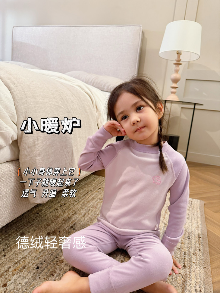 📎细节放大看 无痕任意裁剪 怎么舒服怎么来 你 这款真的我一万个推荐 最好穿的德绒儿童保暖内衣。 上身真心舒服,宝宝穿的也舒心