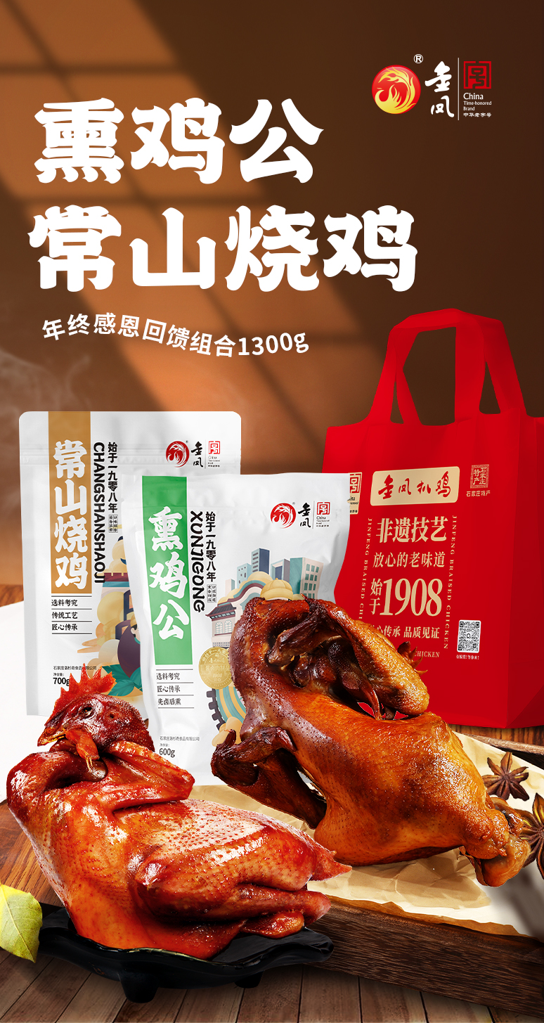 金凤/【常山烧鸡700克+熏鸡公600克】礼袋装