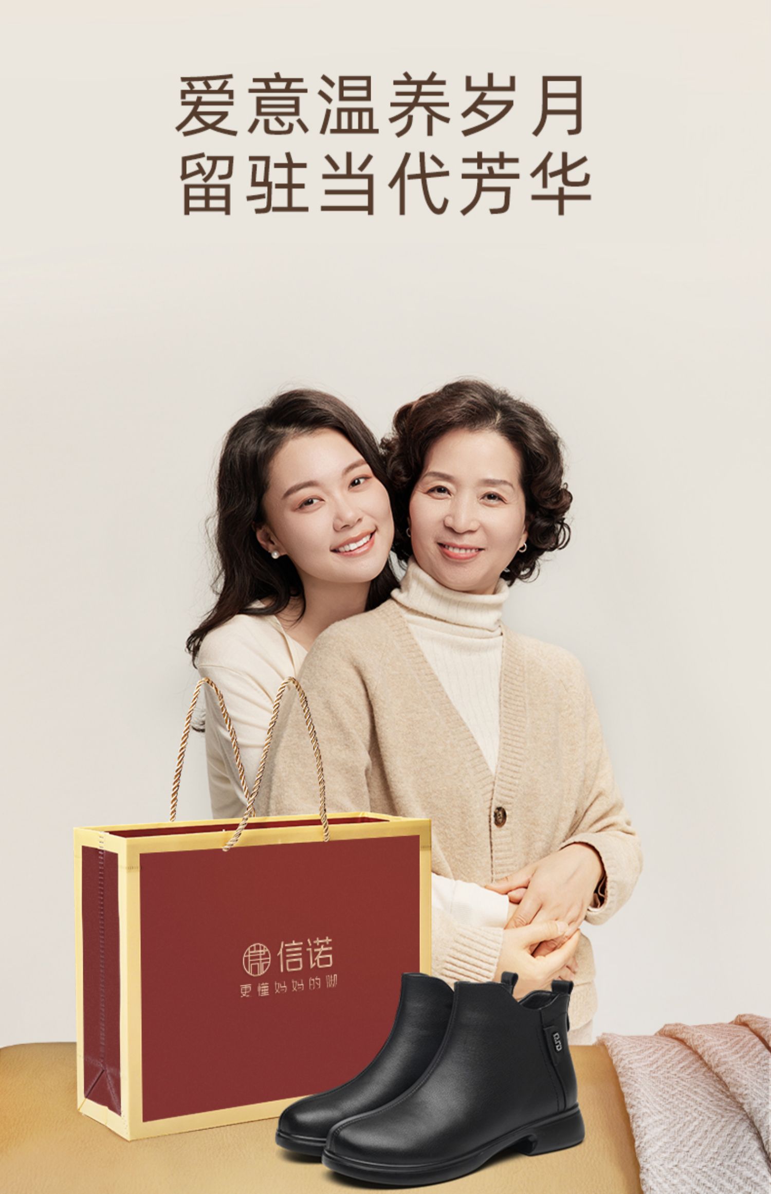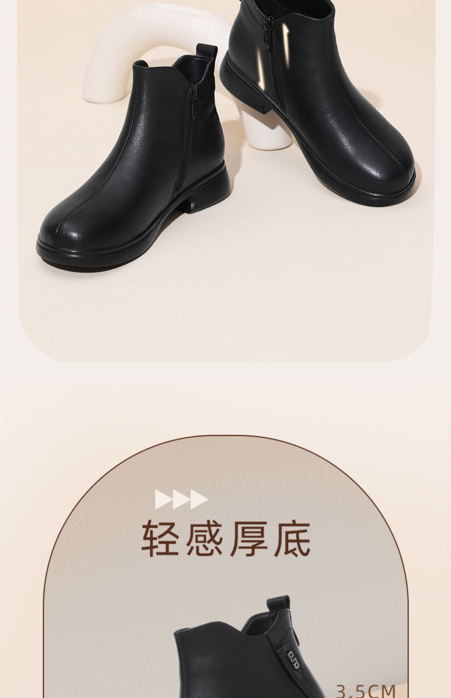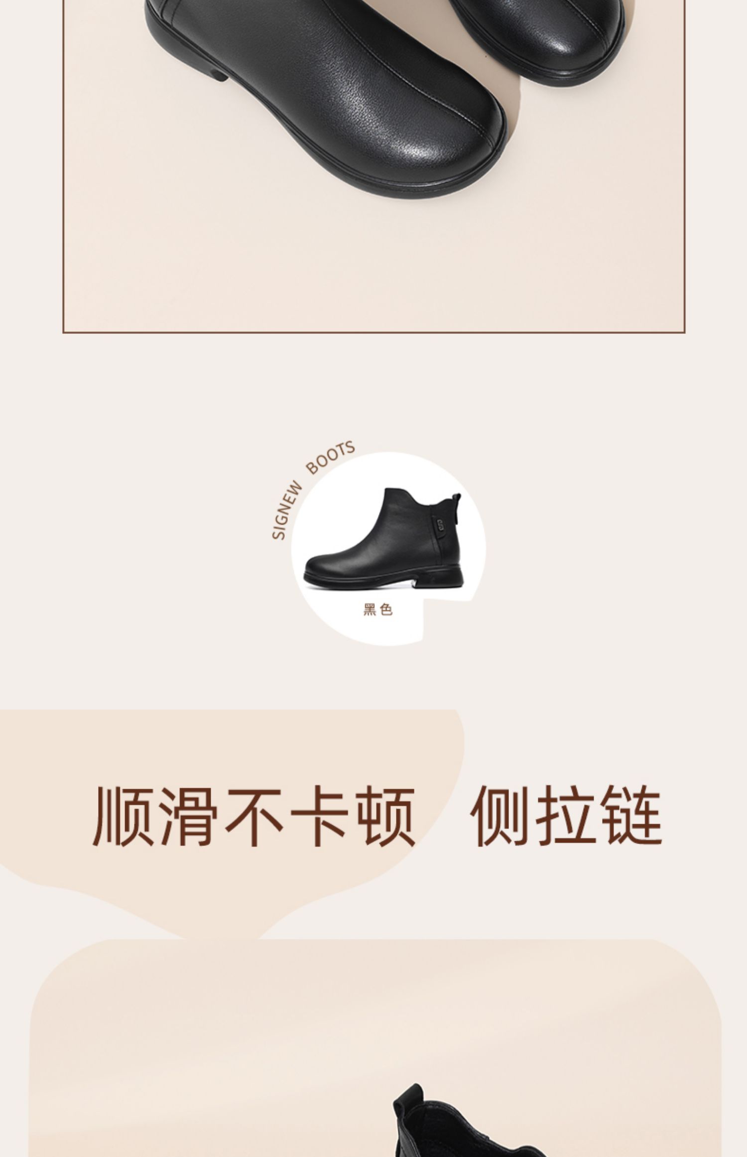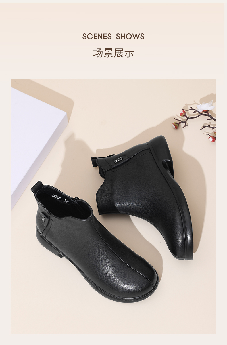 信诺真皮舒适女靴软底短靴2024冬季新款加绒保暖中老年妈妈棉鞋女M868-12D
