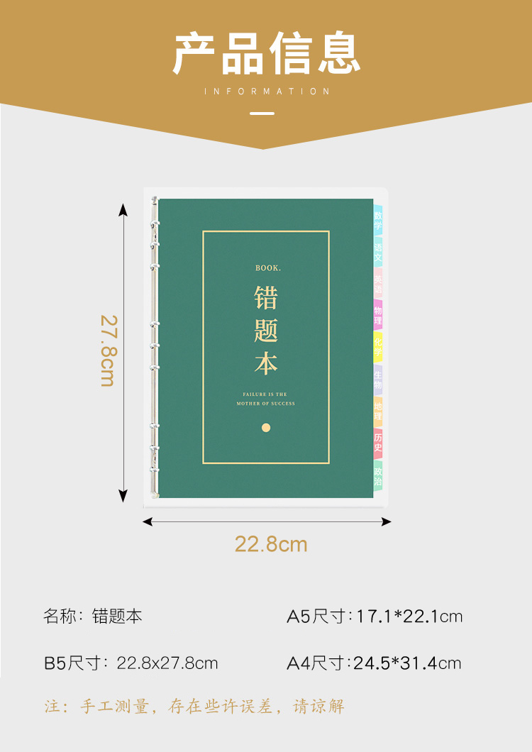 开学季福利!【升级款错题本 活页可拆卸】B5错题本初中高中学生活页可拆卸错题收集整理册文具神器笔记本英语纠错本小学生语文数学加厚考研大学生改错本