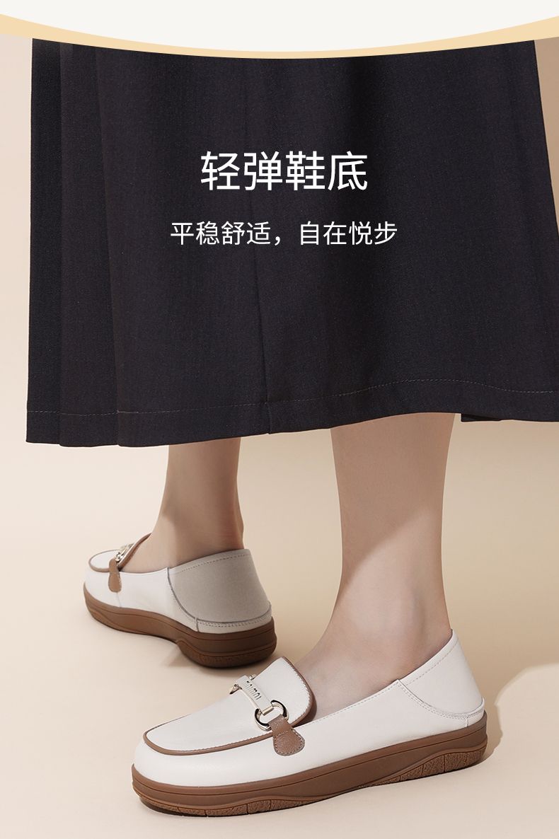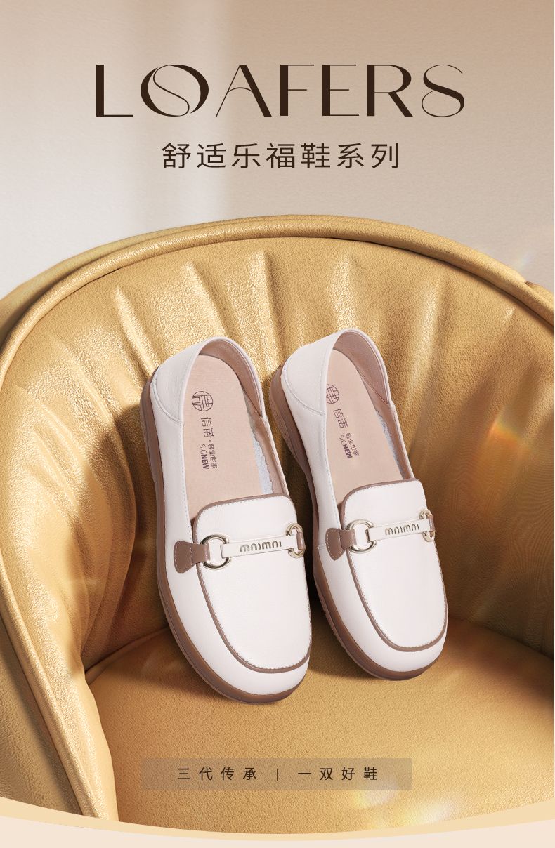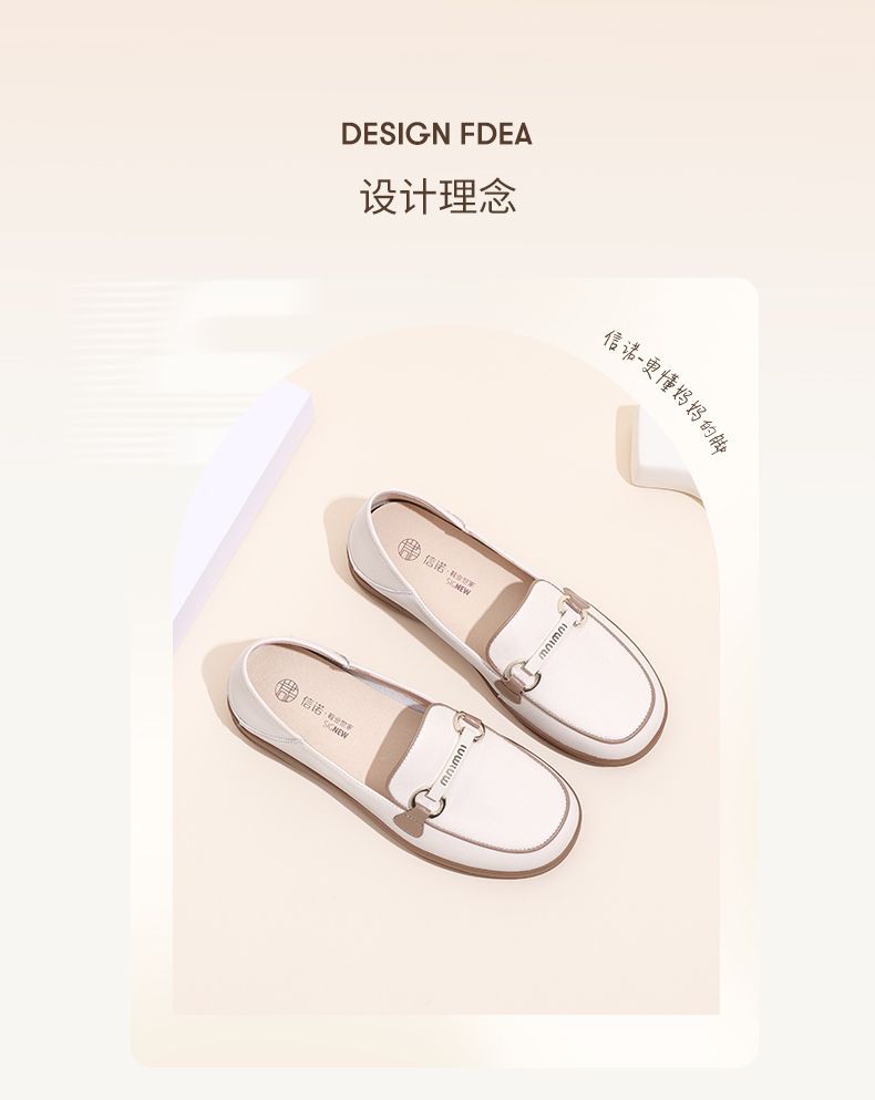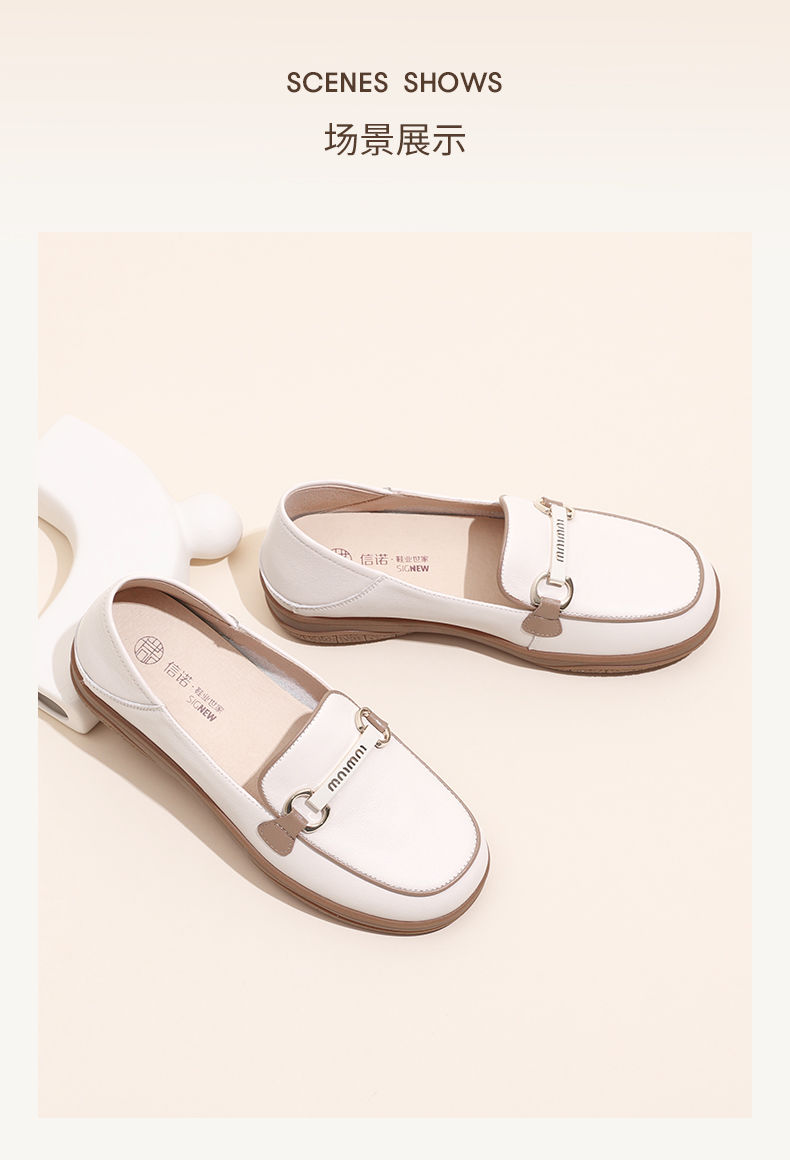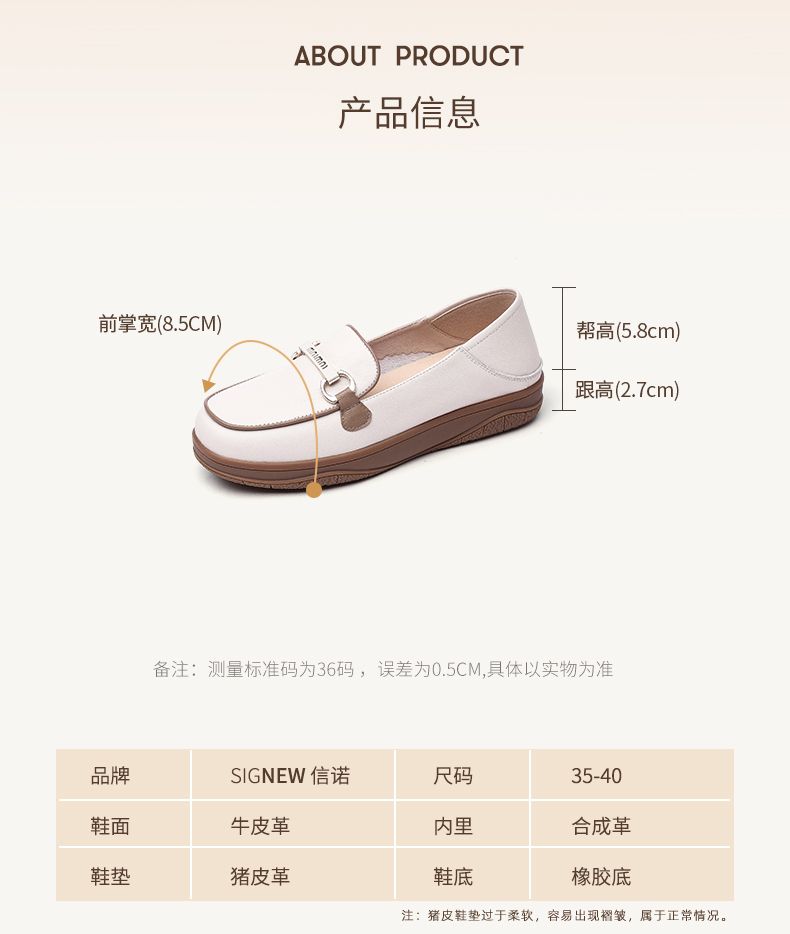 信诺真皮舒适乐福鞋女2024新款秋季小白鞋女士软底一脚蹬妈妈单鞋Q3066-N12