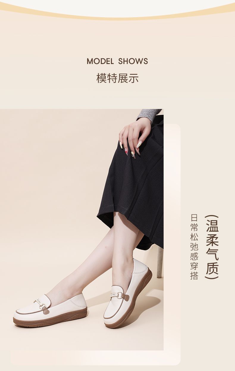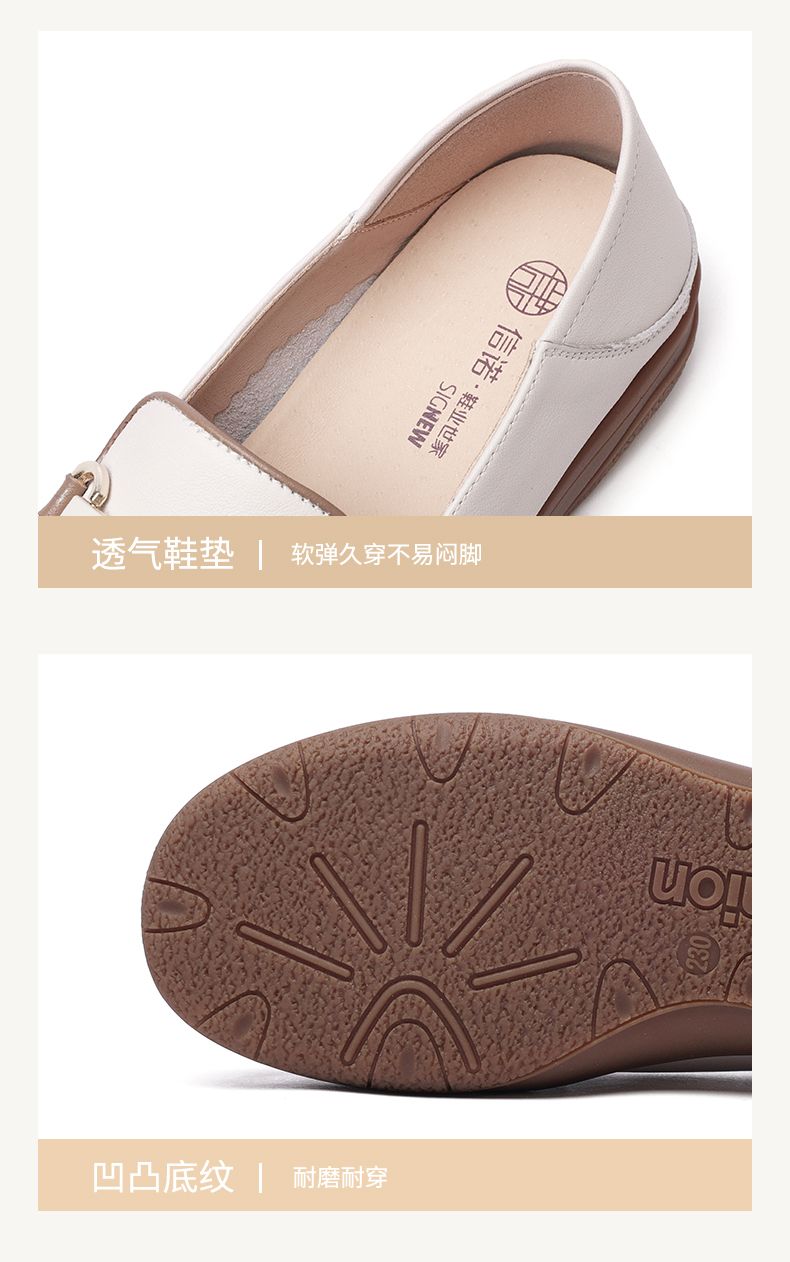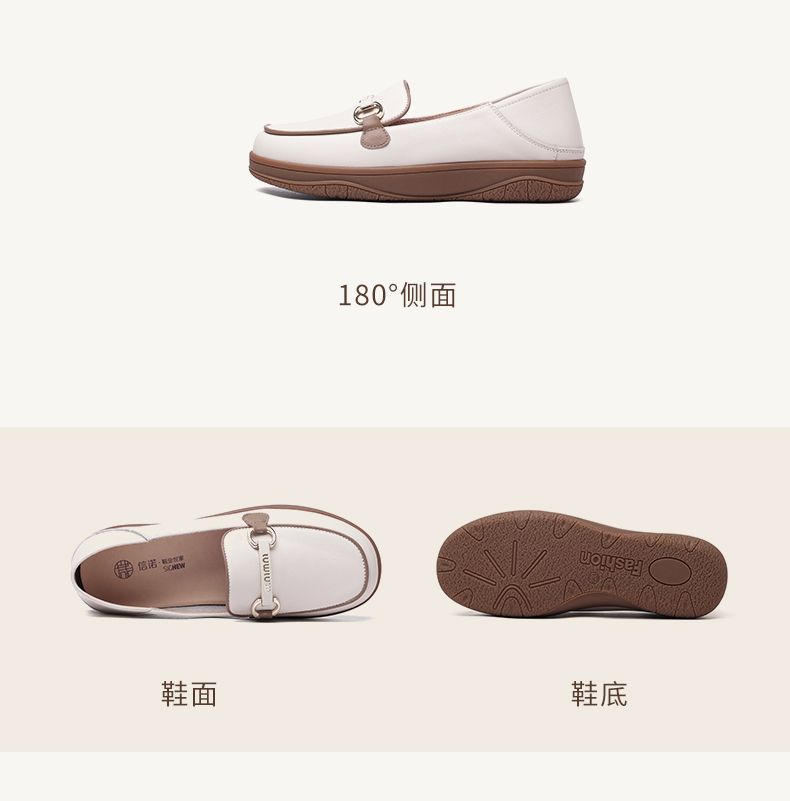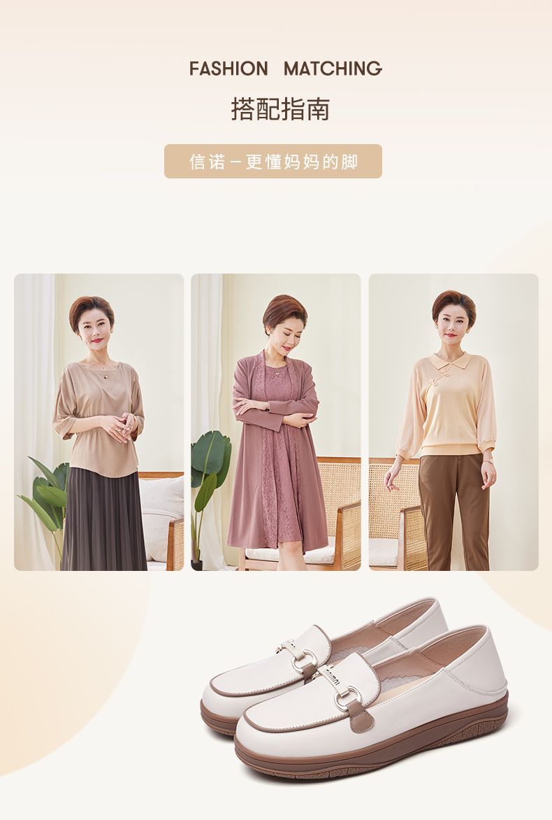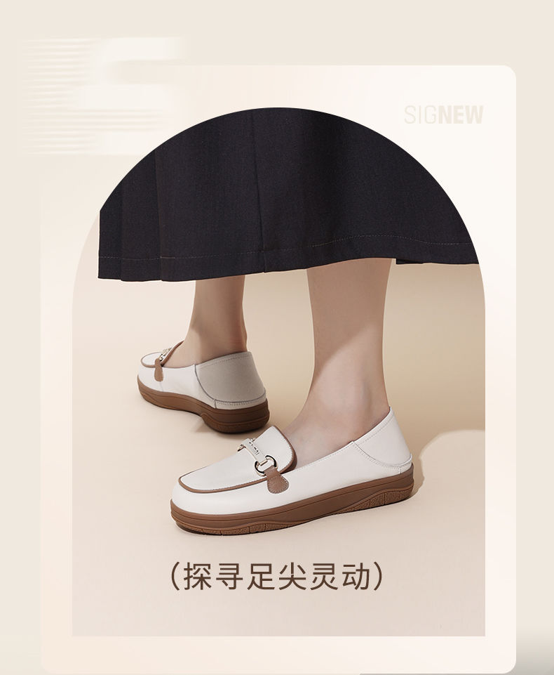 信诺真皮舒适乐福鞋女2024新款秋季小白鞋女士软底一脚蹬妈妈单鞋Q3066-N12