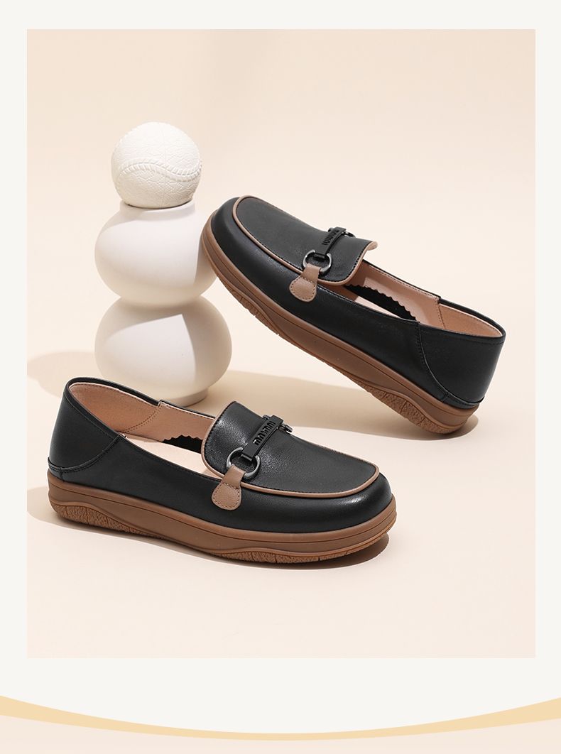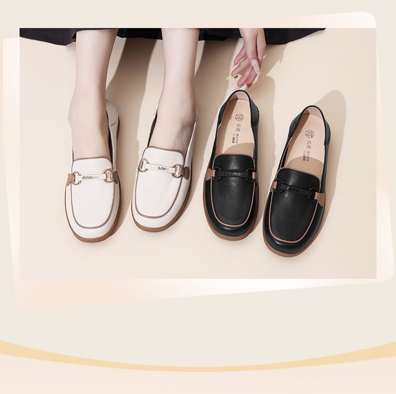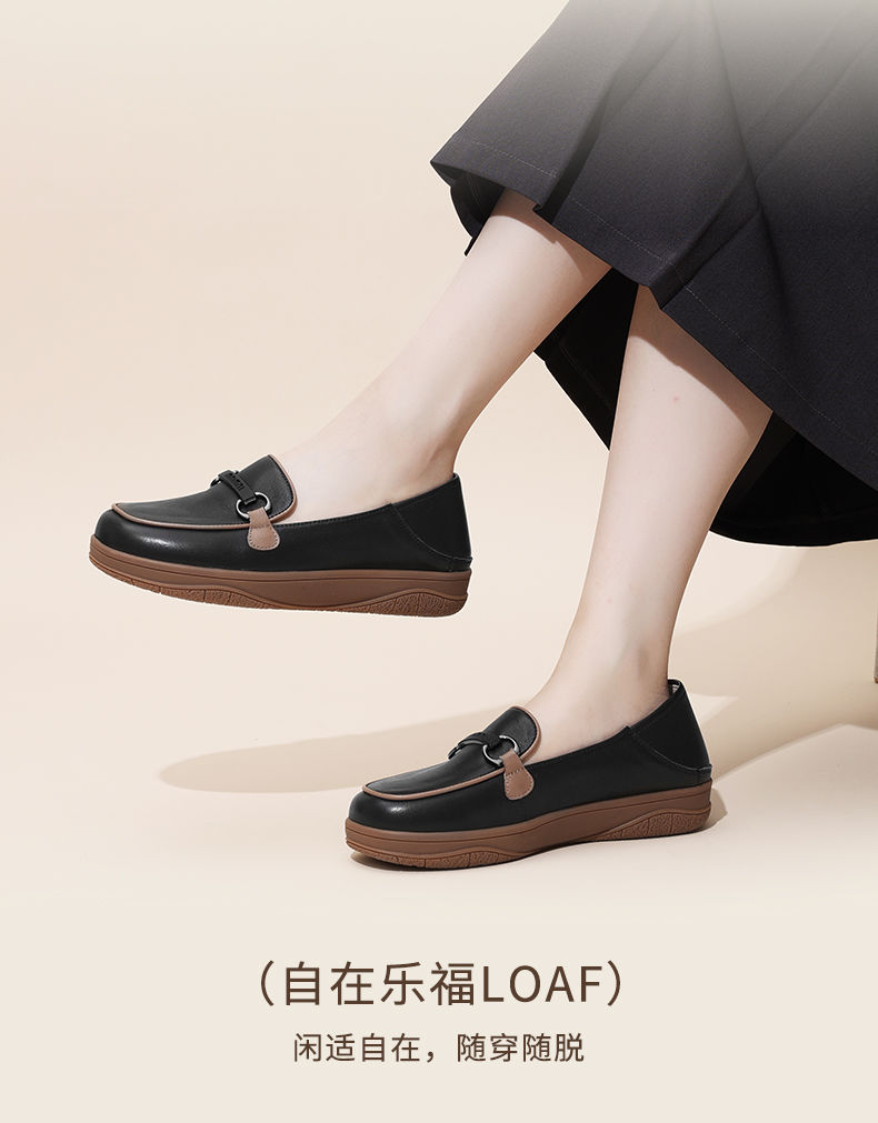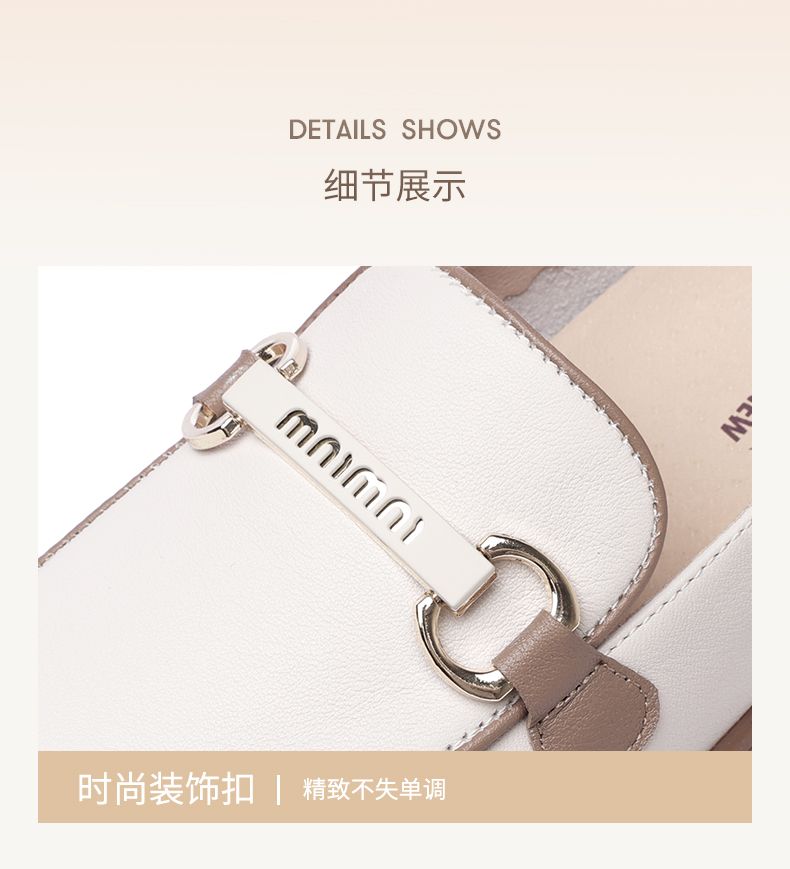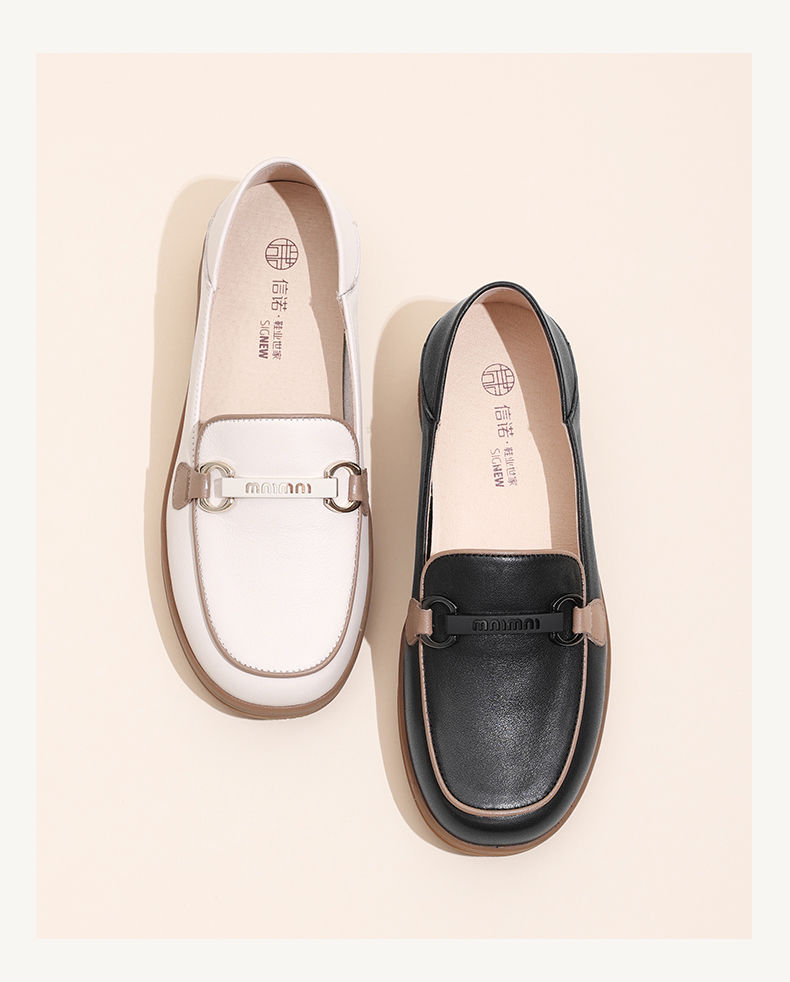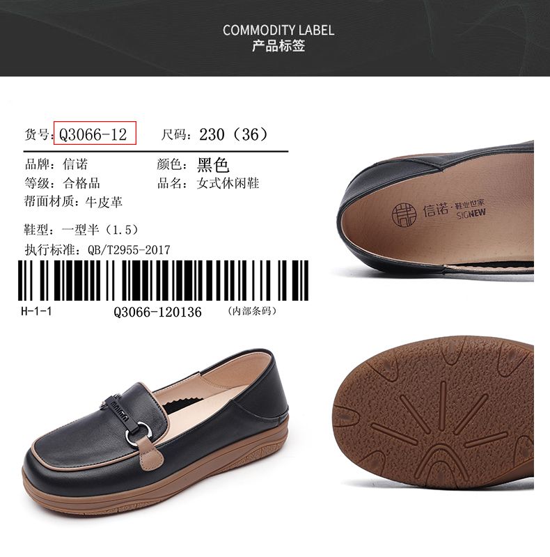 信诺真皮舒适乐福鞋女2024新款秋季小白鞋女士软底一脚蹬妈妈单鞋Q3066-N12