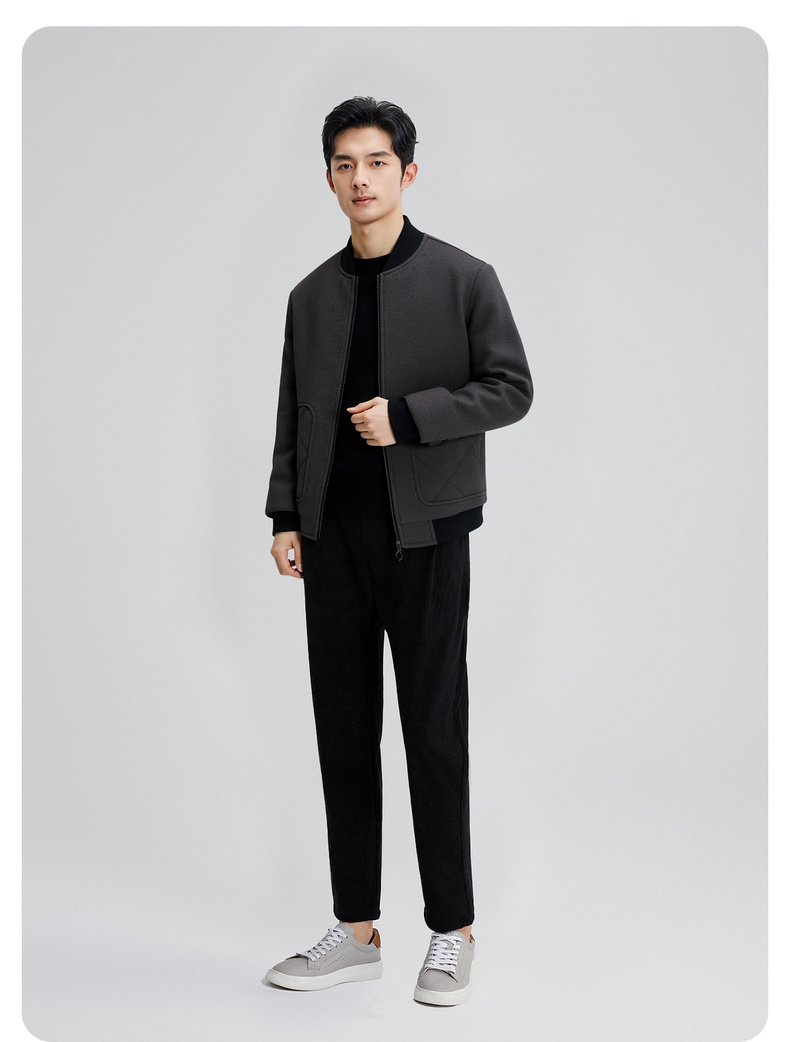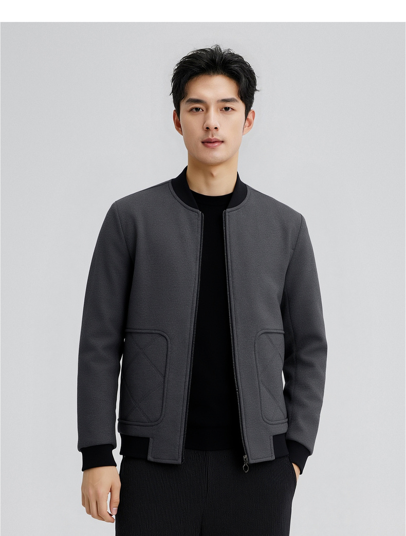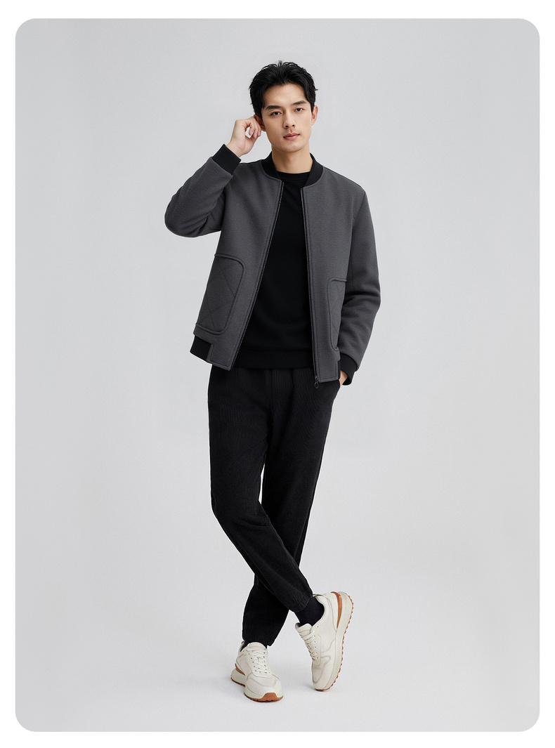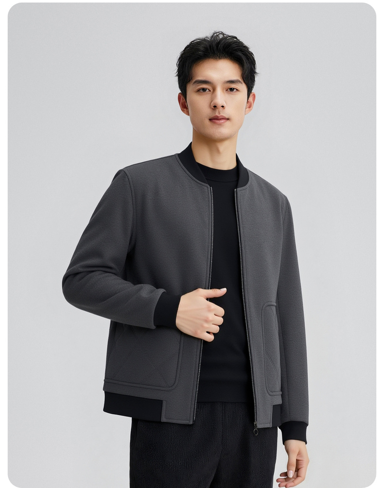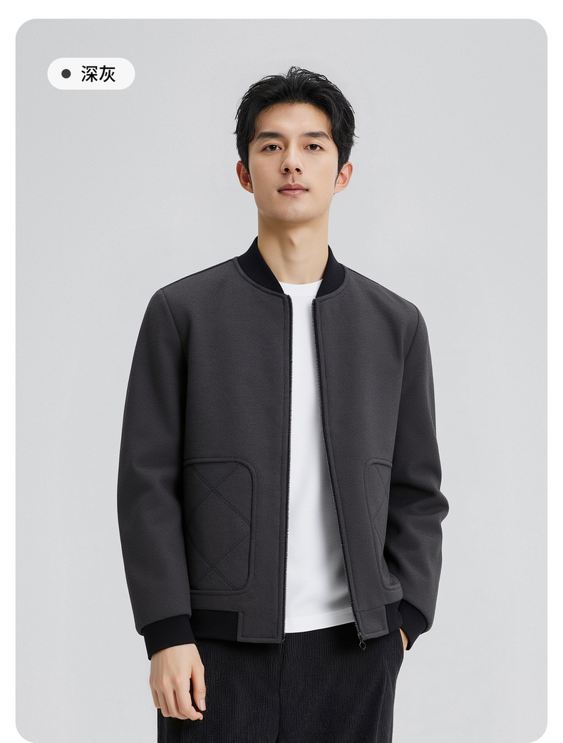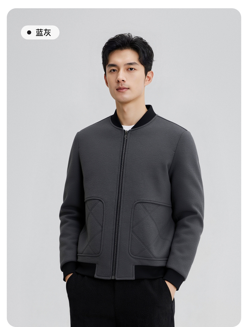 【含绵羊毛】保暖毛呢夹克2025秋新款针织棒球领休闲外套男