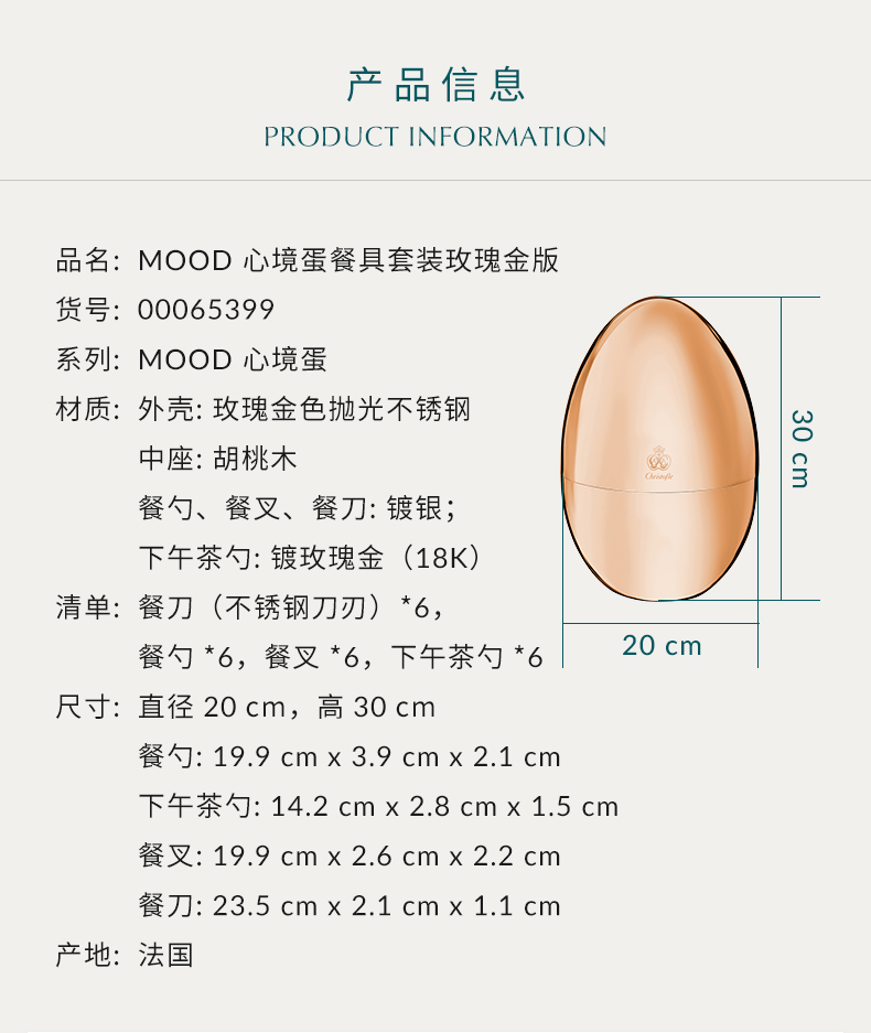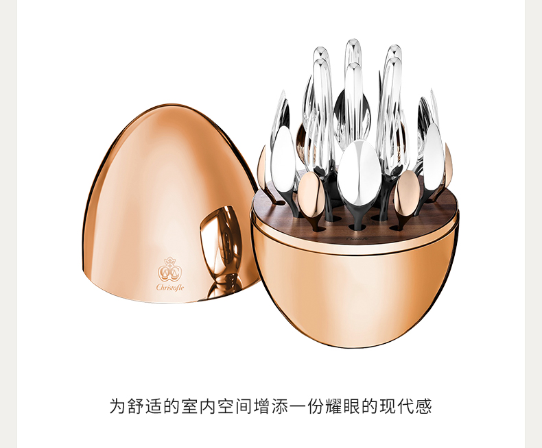 CHRISTOFLE 昆庭 MOOD 心境蛋系列 镀银玫瑰金24件西餐餐具套装