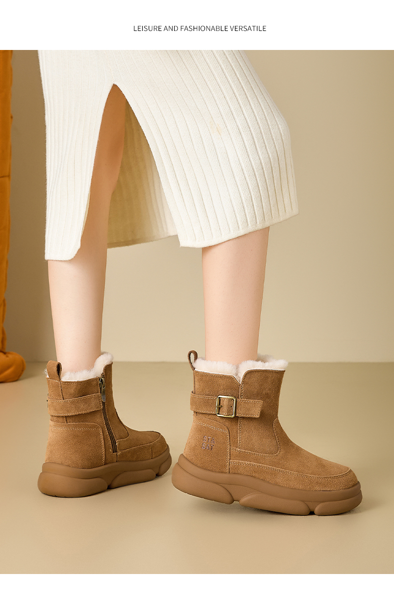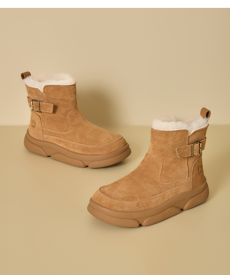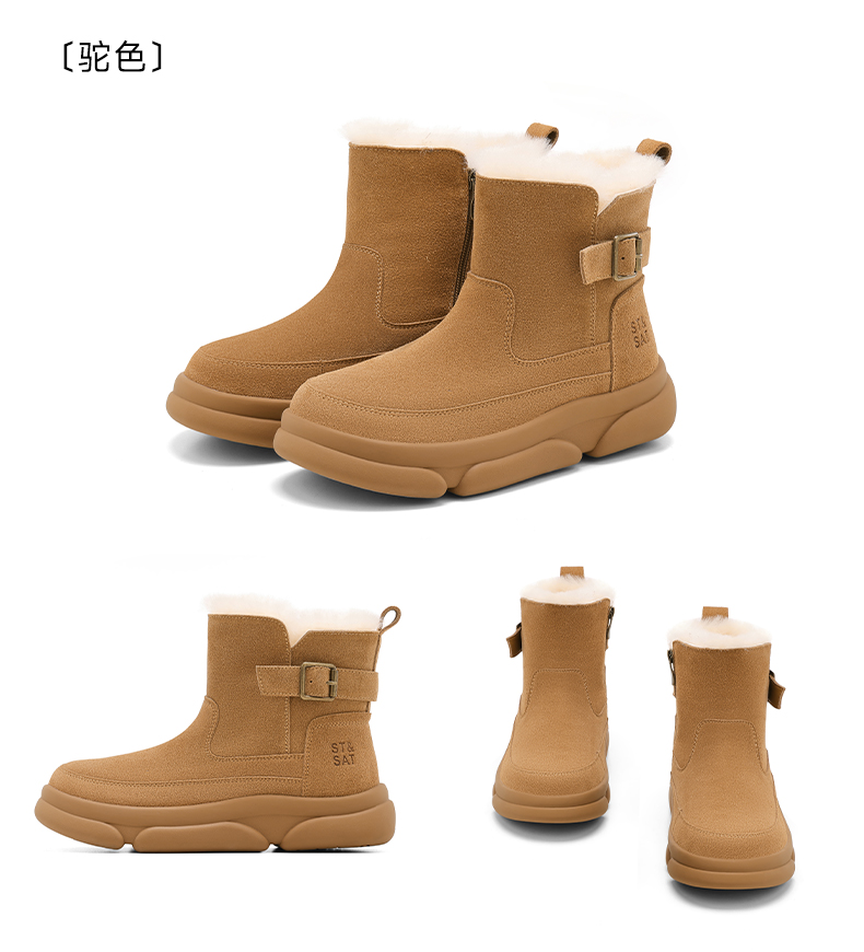 星期六金属扣厚底加绒防滑雪地靴SSD4118CQ6
