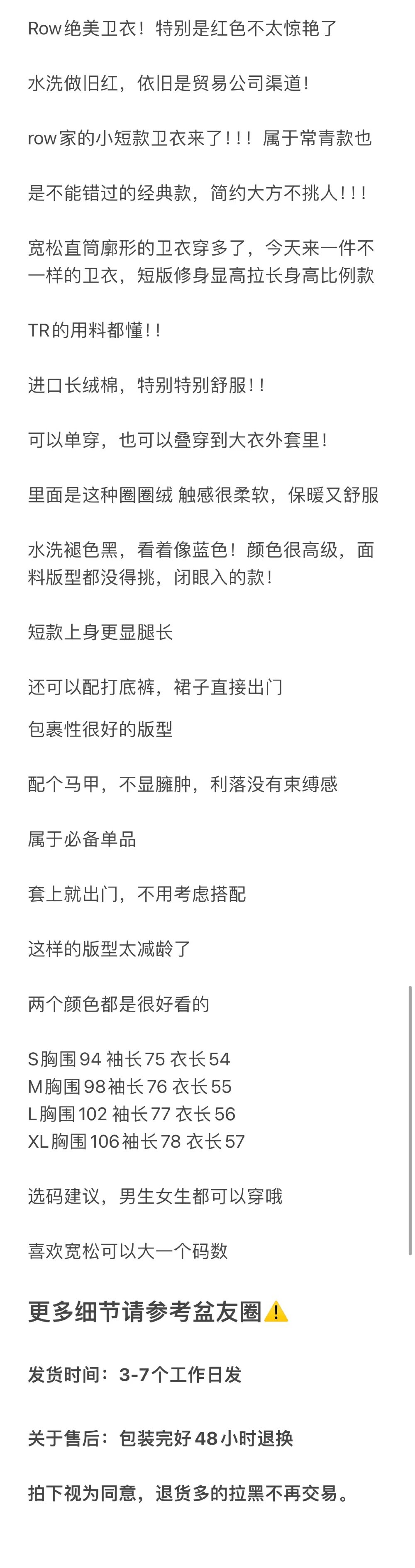 重磅!Row短款连帽卫衣 进口长绒棉加绒卫衣