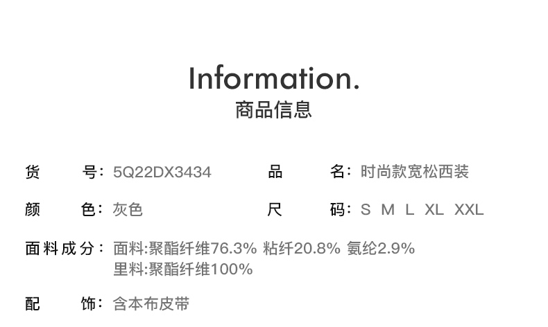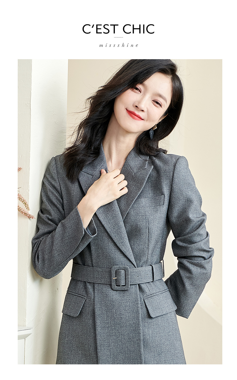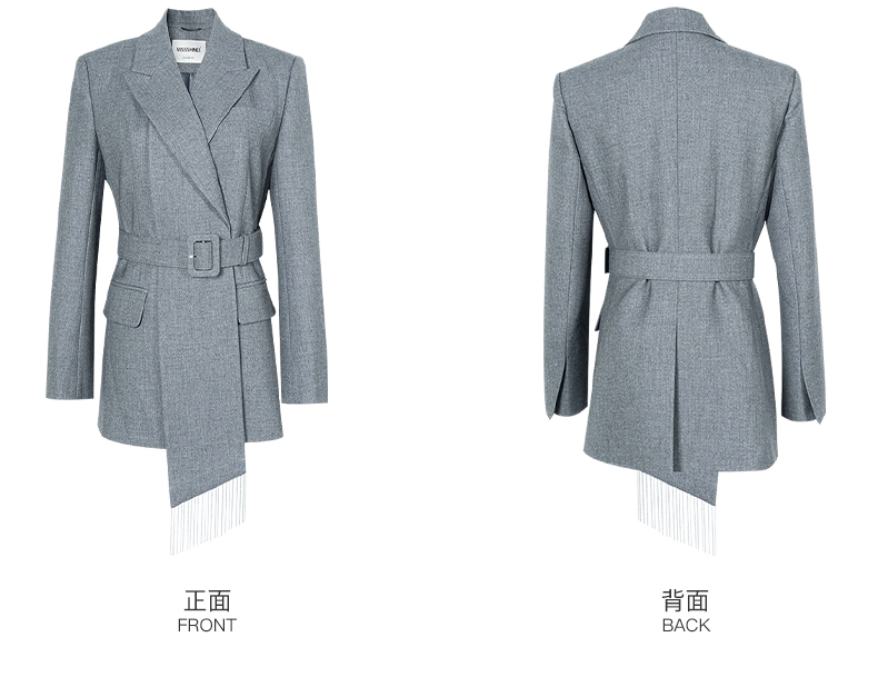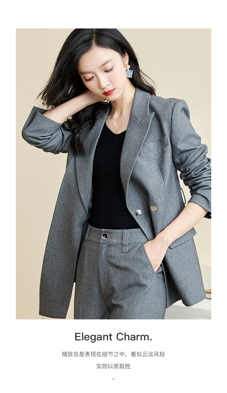 剩S/M/XL/XXL 米思阳2026春季新款时尚气质通勤OL西装经典灰色长袖西服女3434