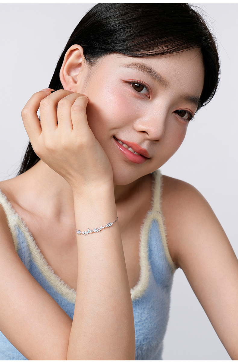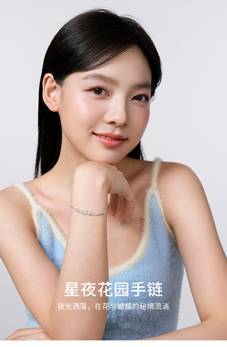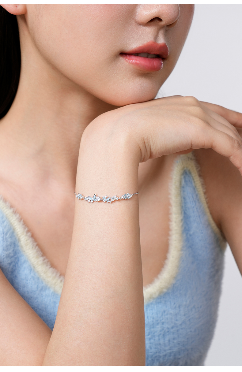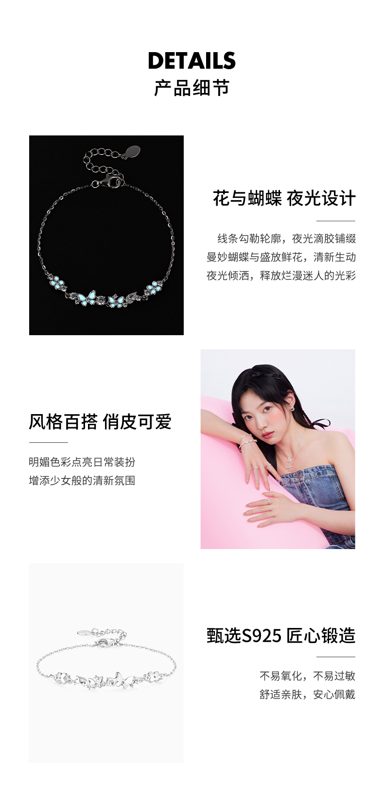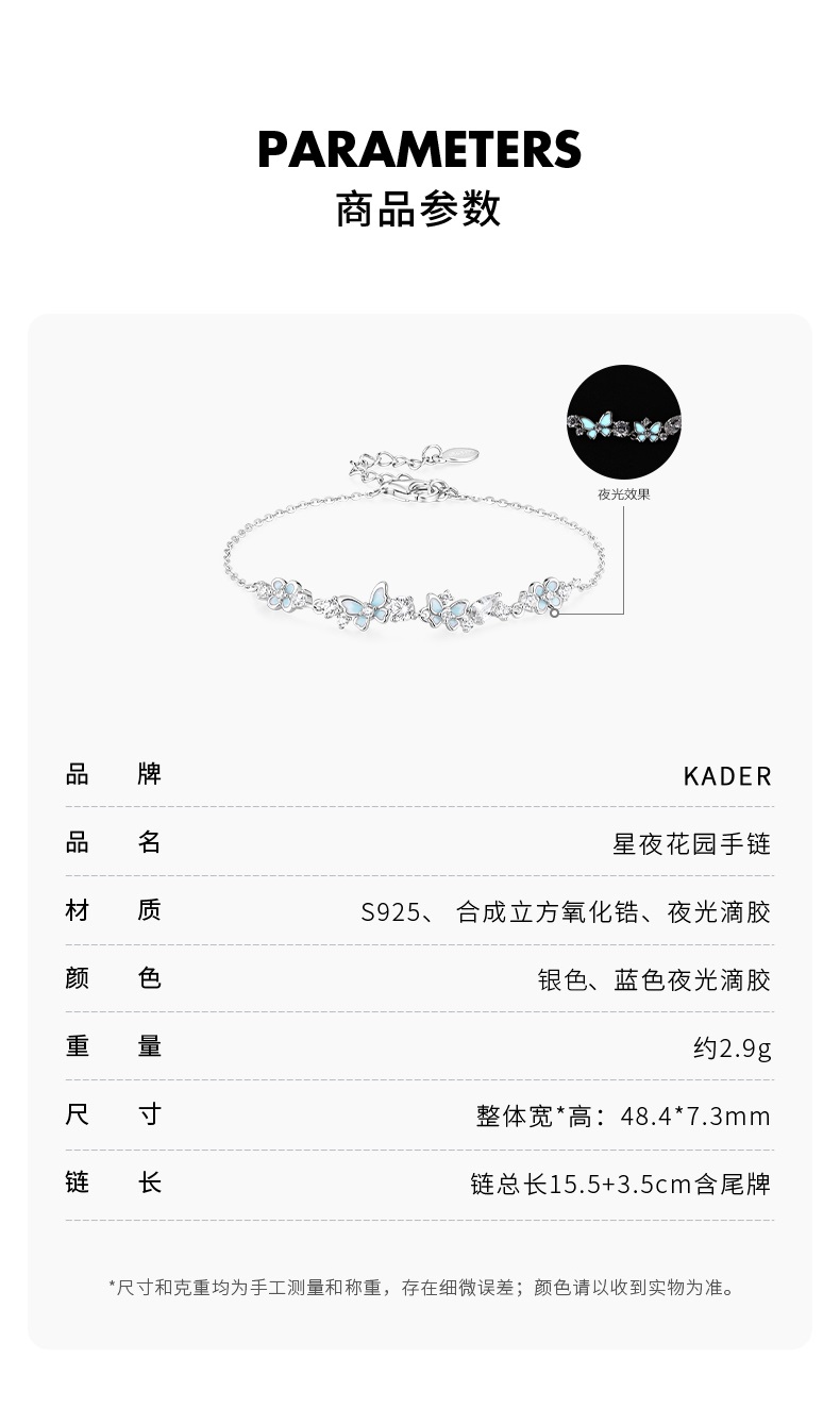 卡蒂罗KADER 星夜花园夜光手链 蝶恋花发光梦幻蝶光拼接链 新奇特灵蝶配饰好运 925银 手链 女款 银色蓝色