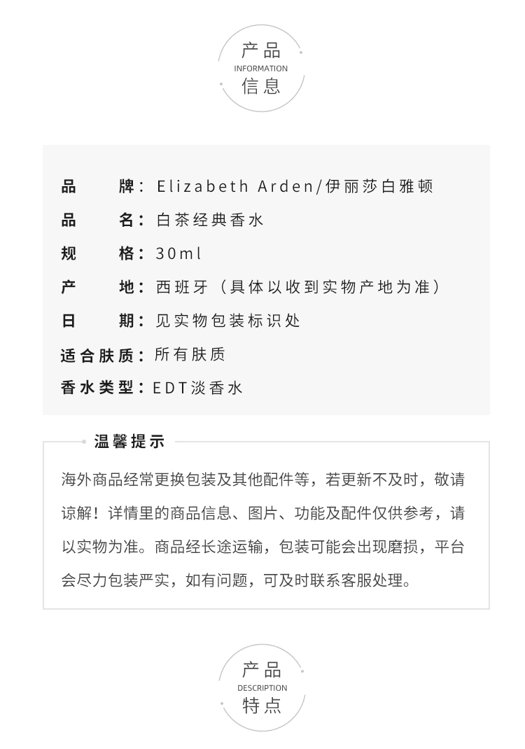伊丽莎白雅顿 白茶香水经典清新淡雅女士香氛 经典香型 30ml/50ml/100ml【CDF】