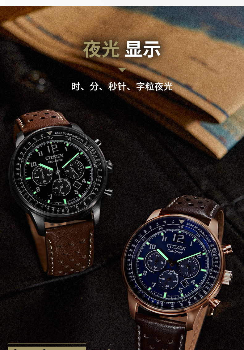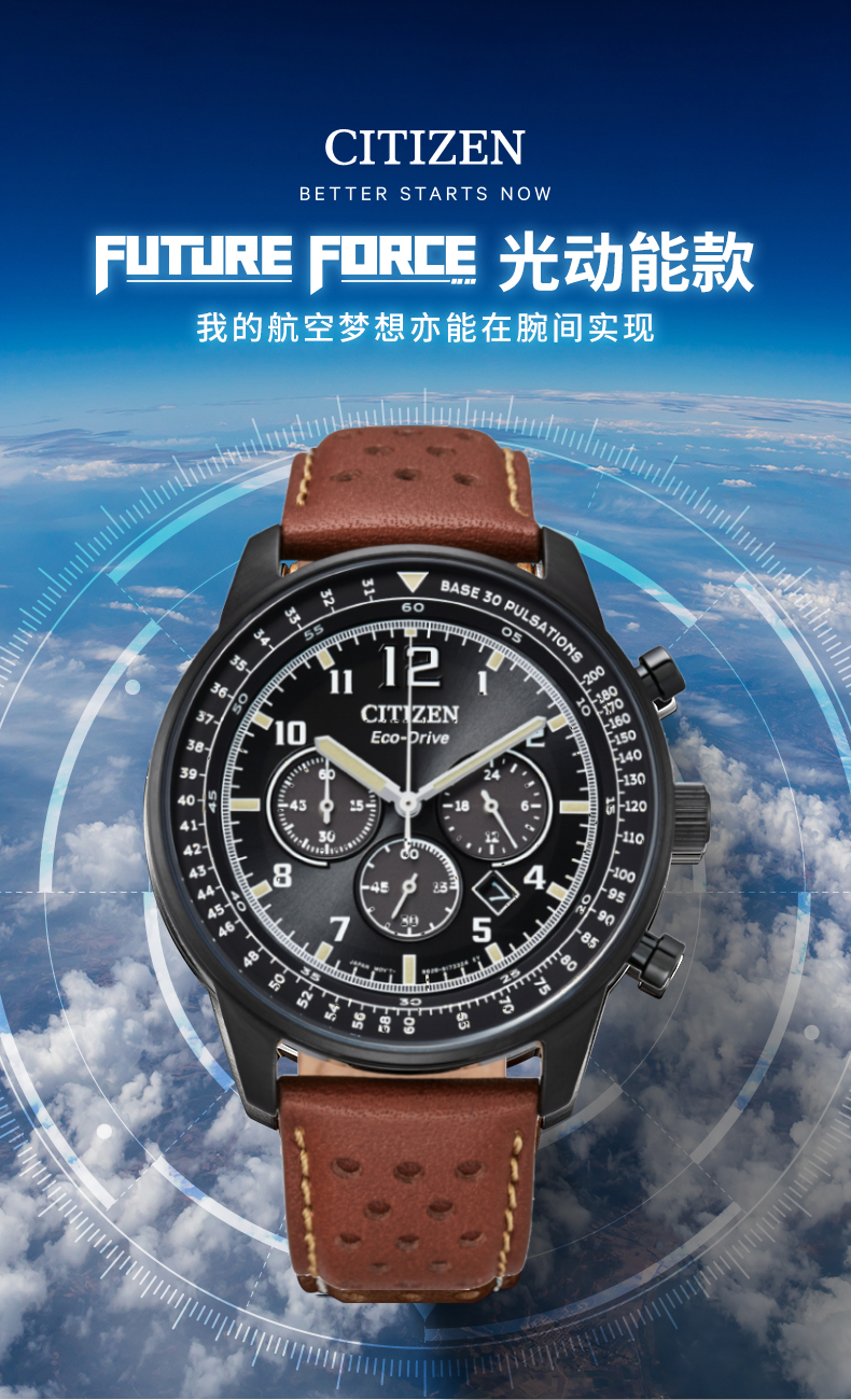 西铁城日本官方正品新FF系列飞行军旅风皮带钢带光动能男表CA4505-12E