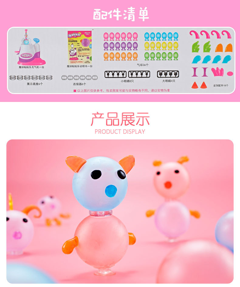 【超好玩的魔法充气机】DIY魔球波波粘粘乐 魔法黏黏乐粘气球趣味儿童玩具