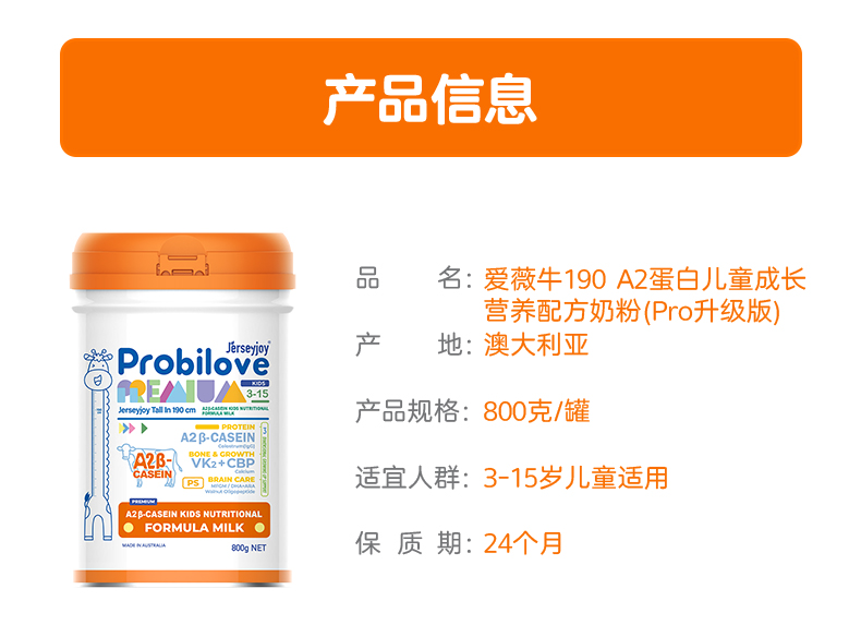 爱薇牛190A2蛋白儿童成长营养配方奶粉(PRO升级版)800g