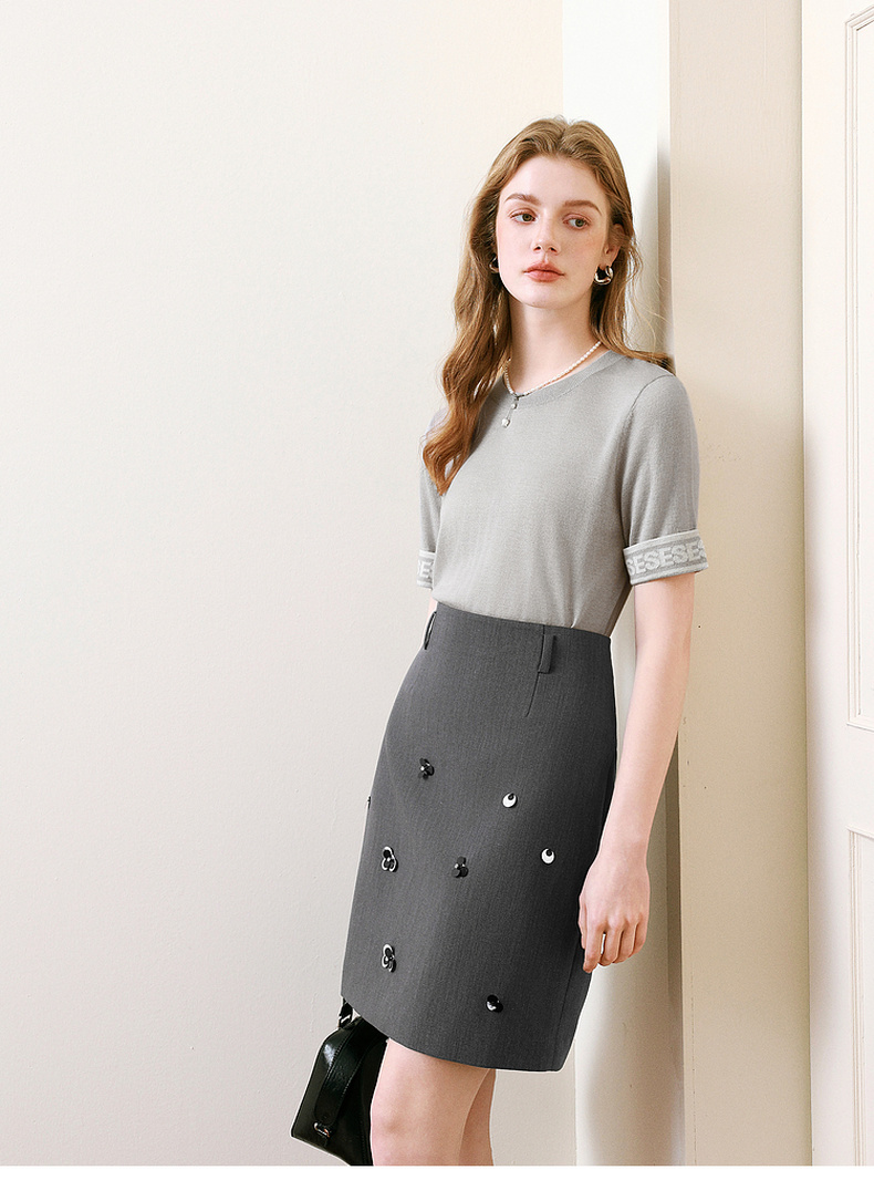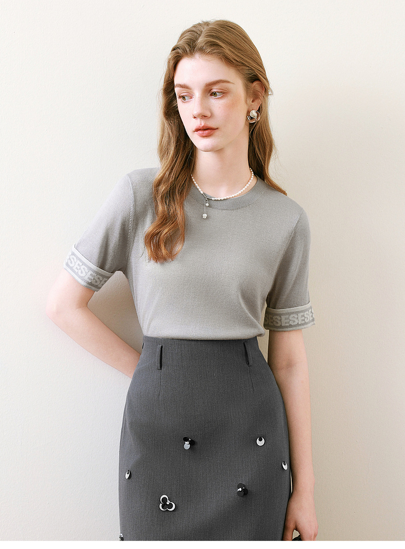 【商场同款】诗凡黎百搭套头针织衫2025夏新款短袖上衣3G5230471