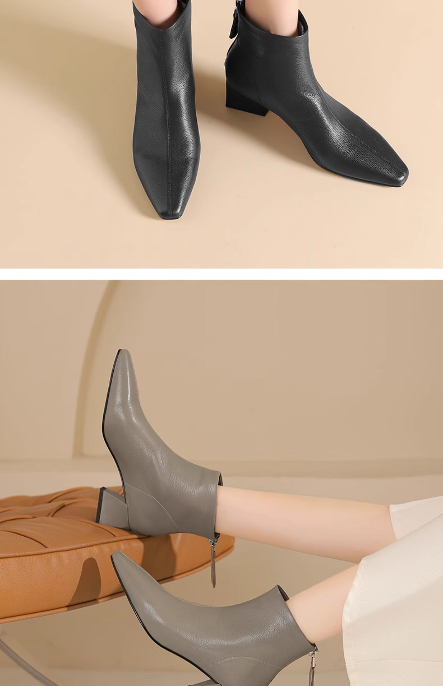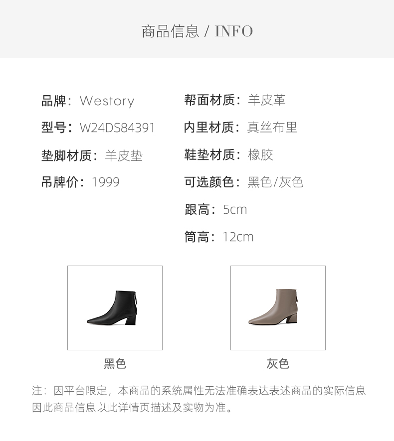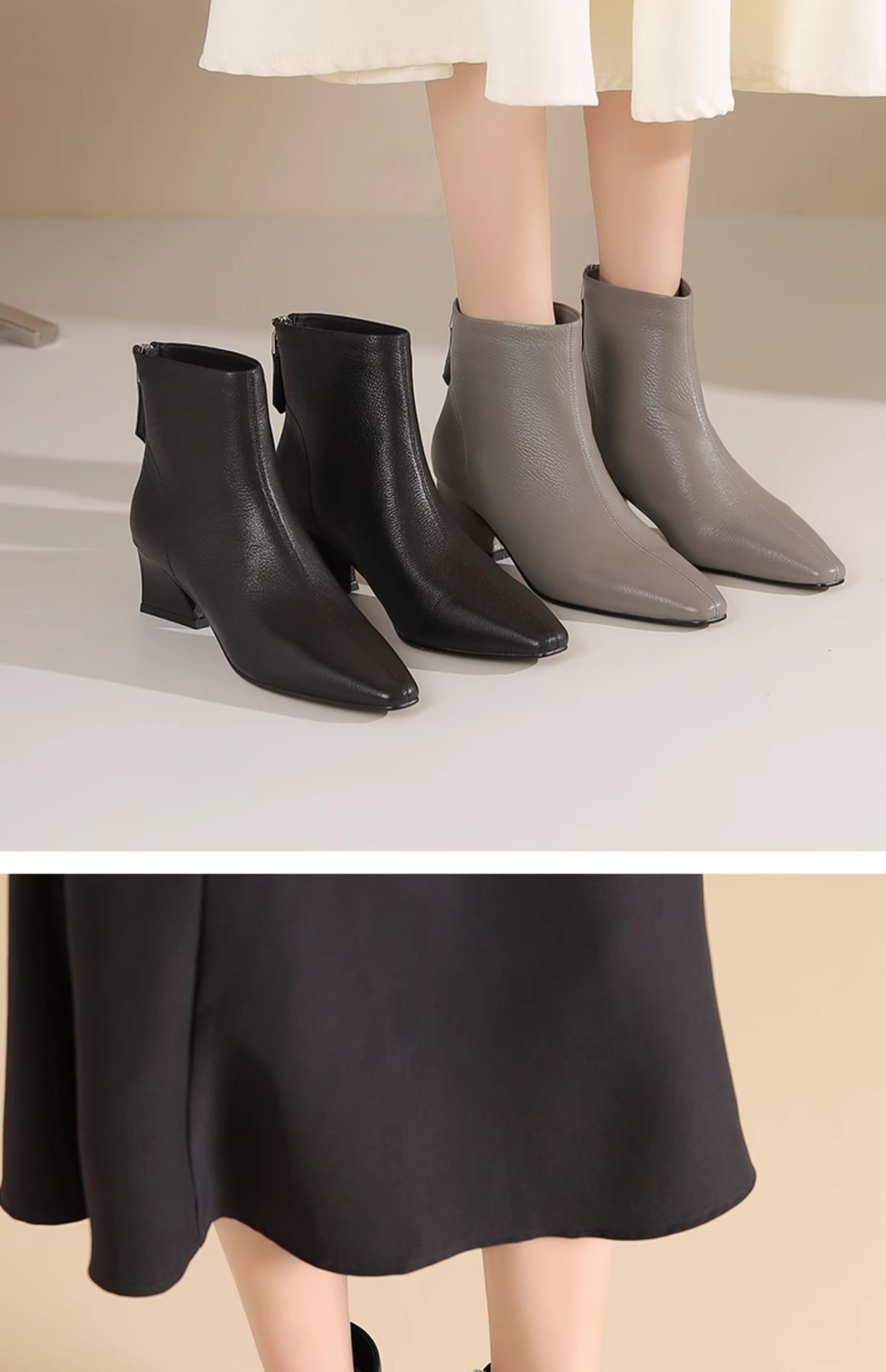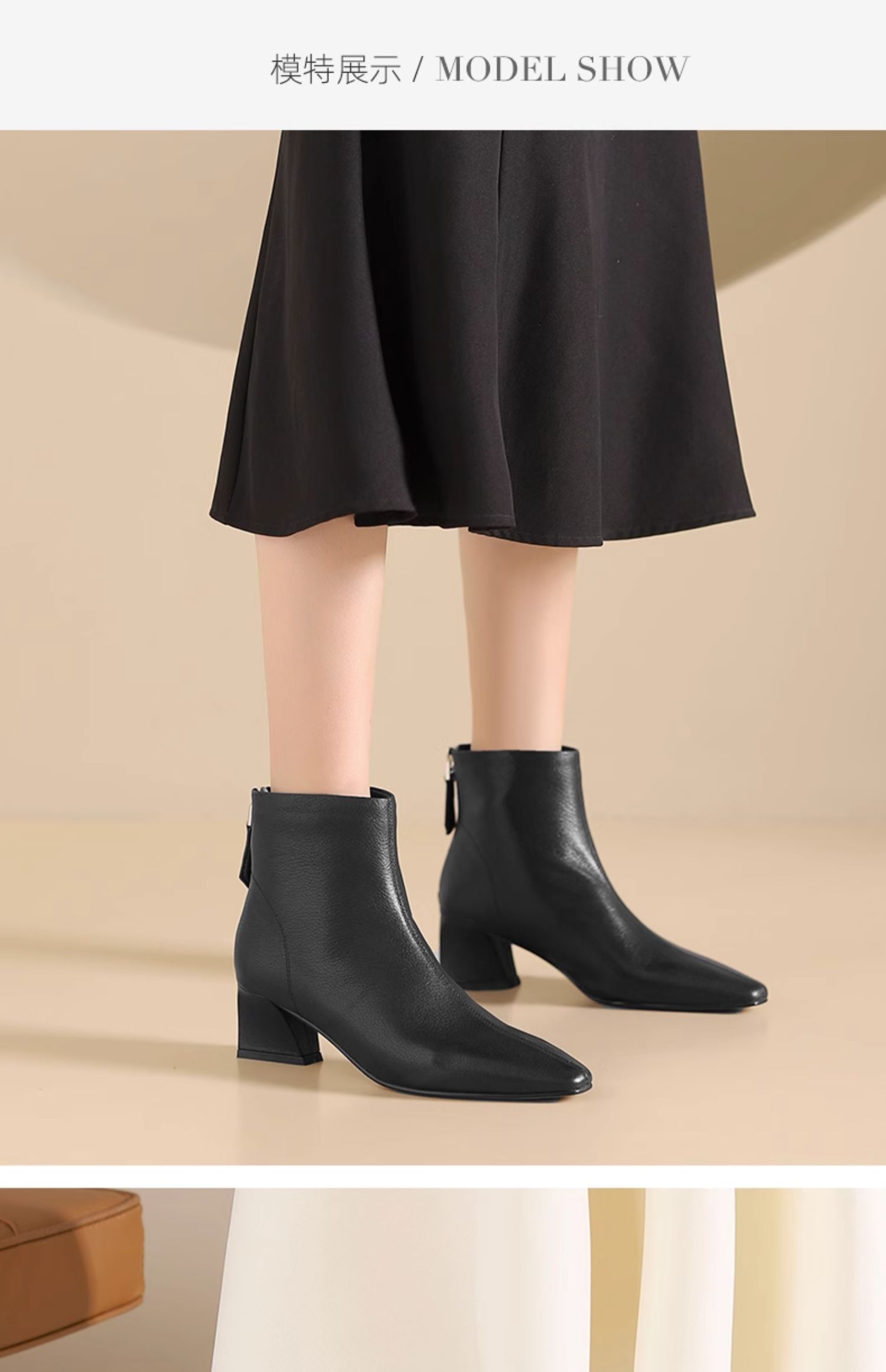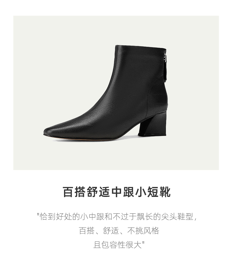 westory2024秋冬新款百搭舒适通勤中跟小短靴简约高级时装靴女W24DS84391