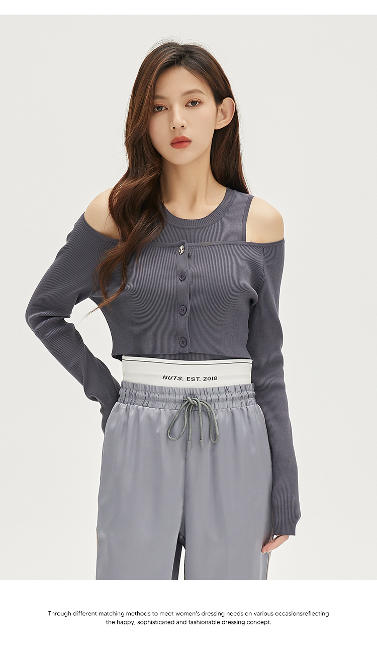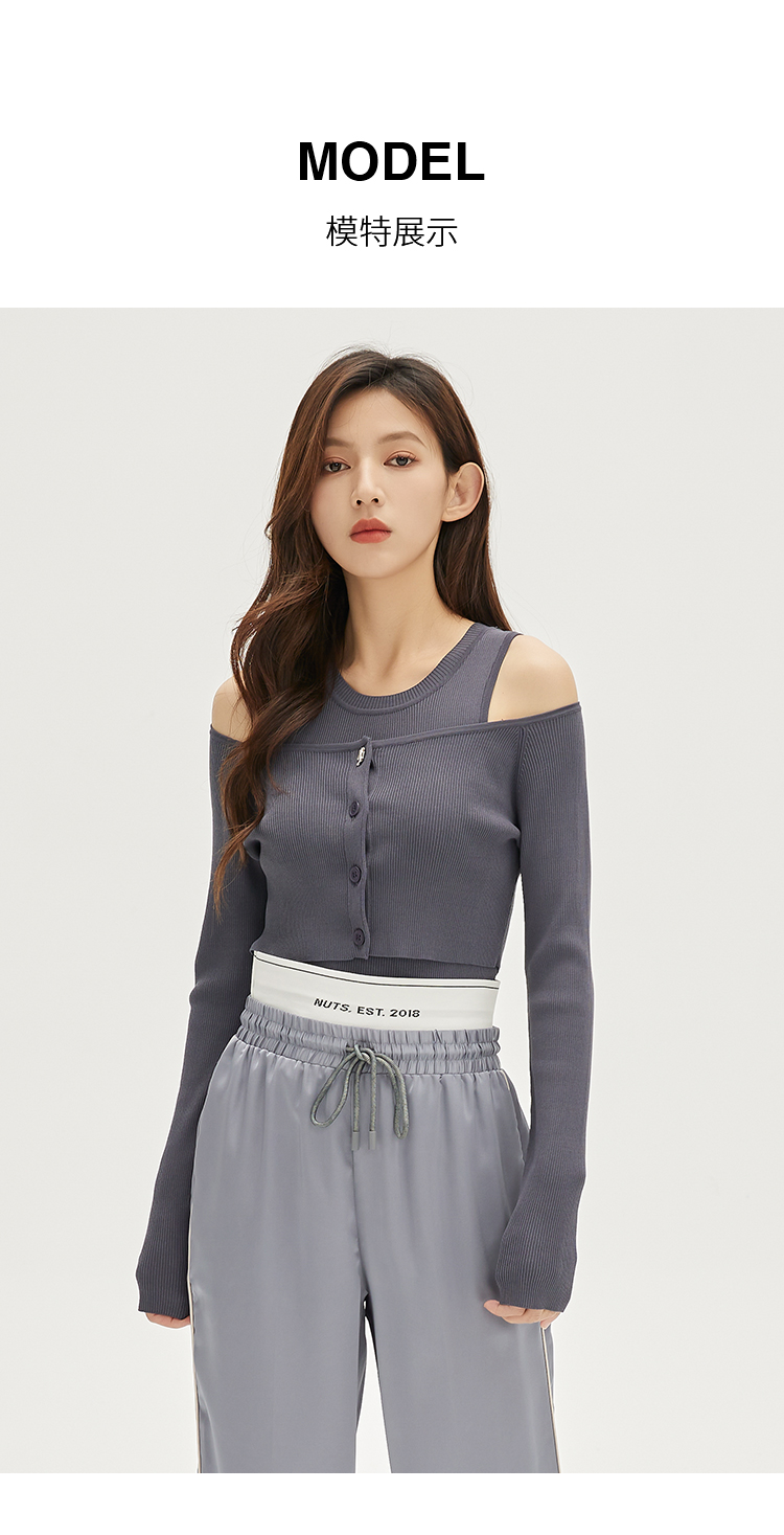 NUTS秋季新款时尚气质通勤风设计感两件套装针织套头衫332052012