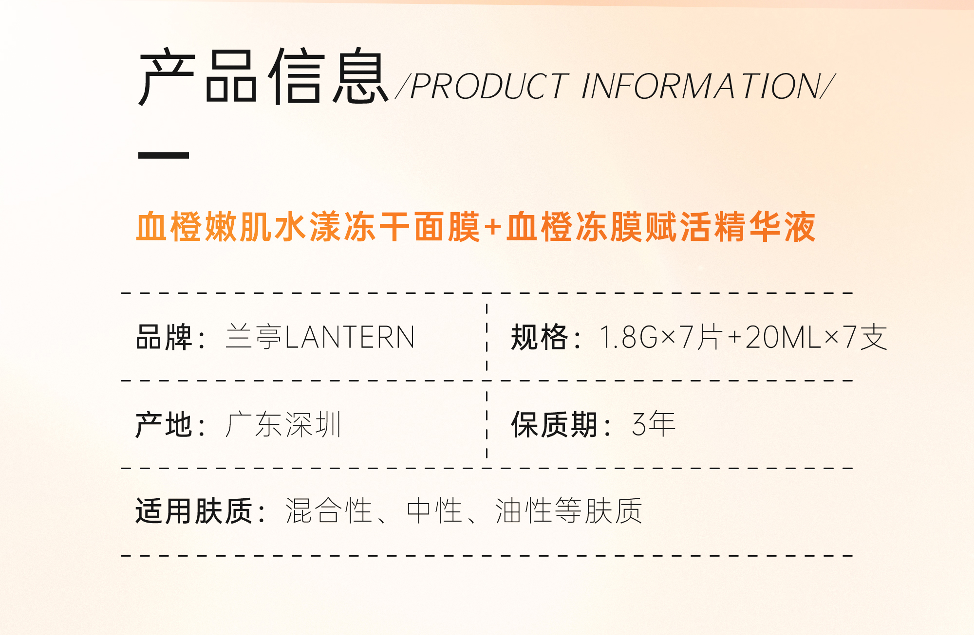 DIAMOND LANTERN兰亭 血橙嫩肌水漾冻干面膜 1.8g*7片