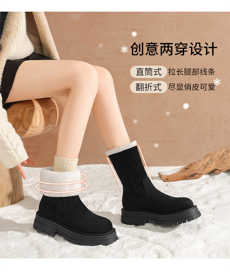 ZHR则则长筒加绒雪地靴保暖两穿棉鞋女2024冬季新款时尚防滑靴子