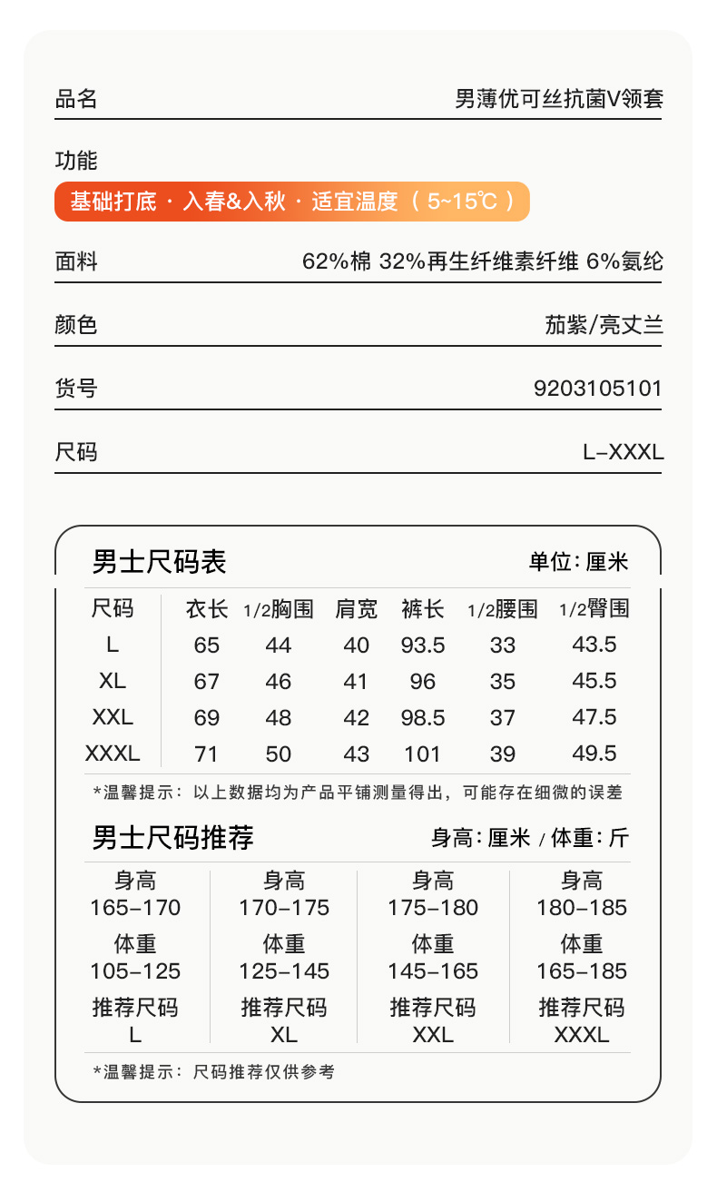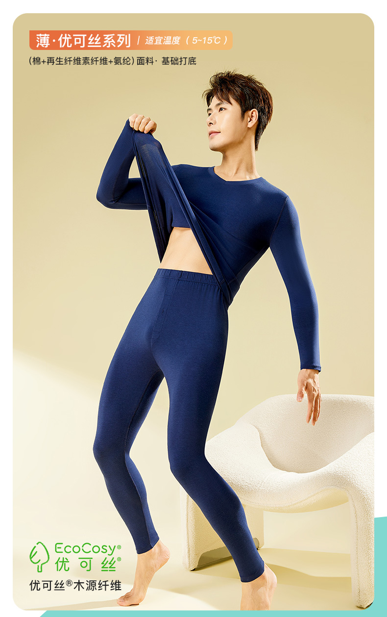 爱帝男士亲肤抑菌优可丝高弹保暖打底内衣套装