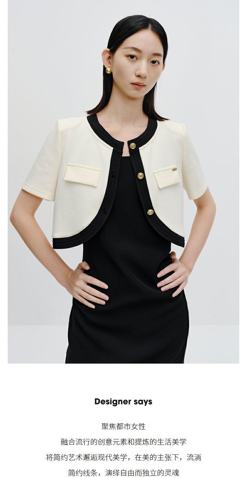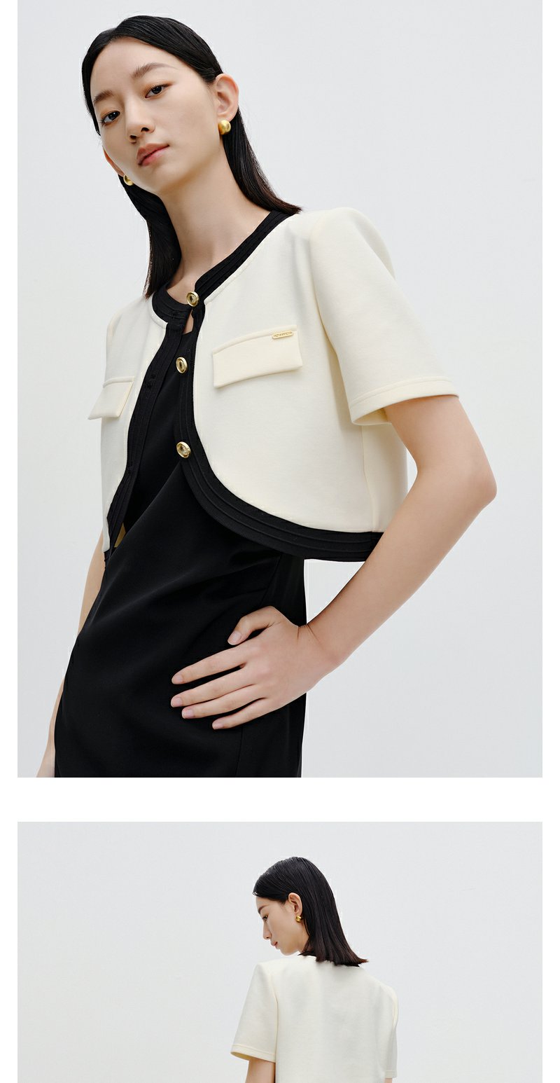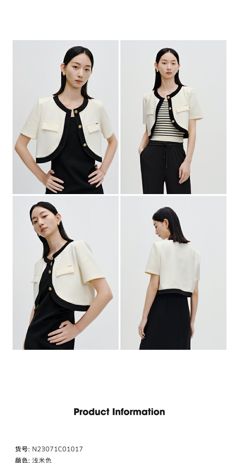 NEELLY纳俪商场同款小香风短款气质外套女撞色金扣气质上衣百搭N23071C01017