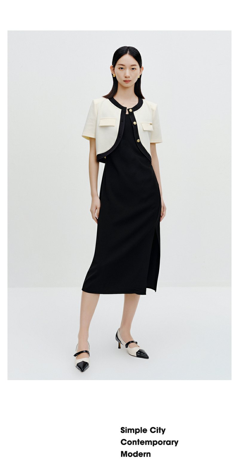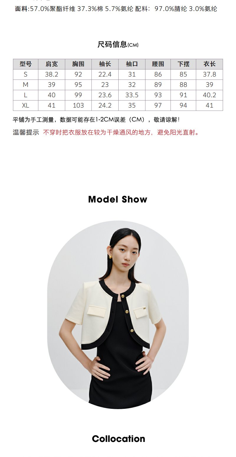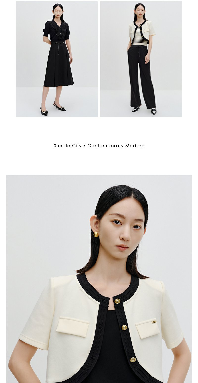 NEELLY纳俪商场同款小香风短款气质外套女撞色金扣气质上衣百搭N23071C01017