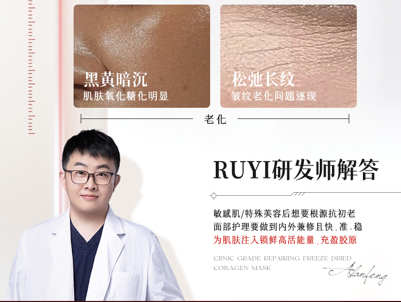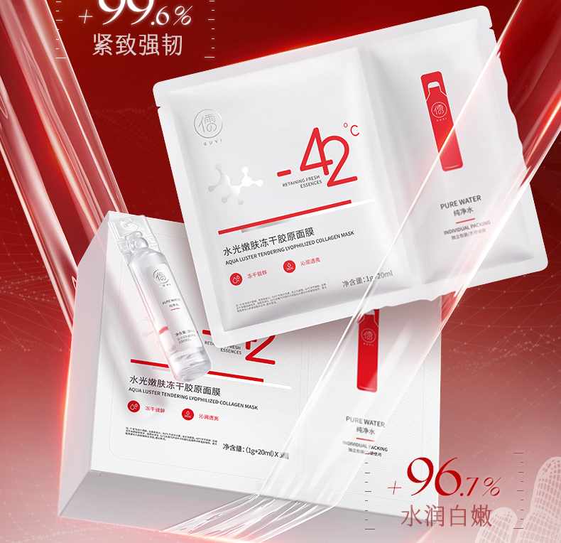 水光嫩肤冻干胶原面膜5片/盒 冻干面膜抗皱紧致抗衰老双抗修护补水美白去黄气|儒意官方商城