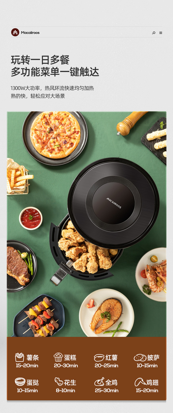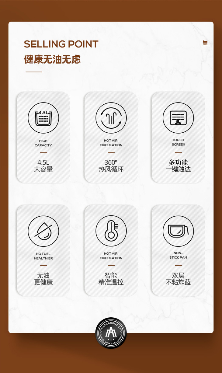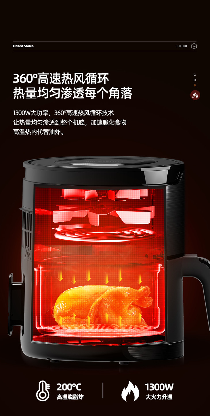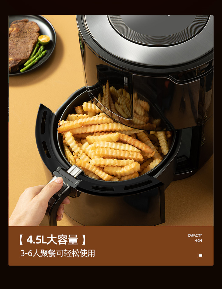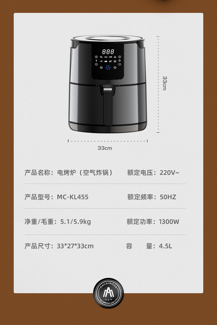 【迈卡罗】迈卡罗空气炸锅家用多功能电炸锅4.5升大容量无油煎炸锅MC-KL455