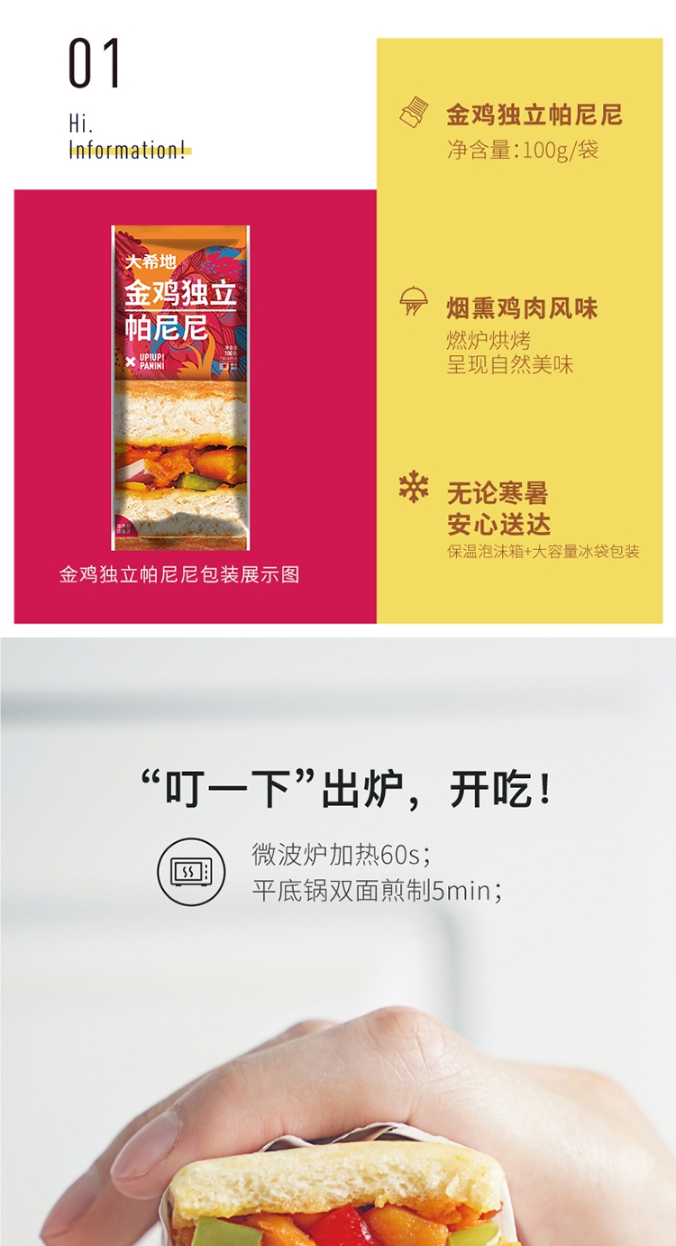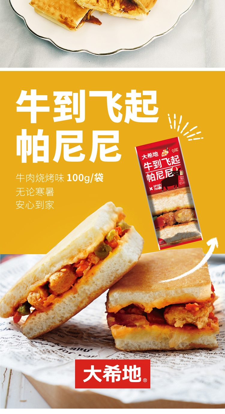 【7天早餐不重样】大希地金鸡独立帕尼尼+培根帕尼尼+牛到飞起帕尼尼+蒸饺200g+海鲜披萨100g+牛肉烧烤披萨100g+汤包250g+玉米粒100g★