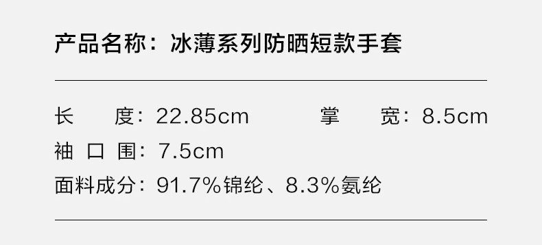 ️售后政策:支持7天无理由退换货【女款】冰薄系列防晒手套-带扣款