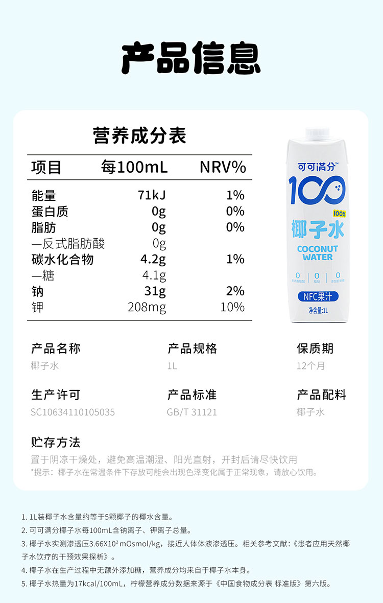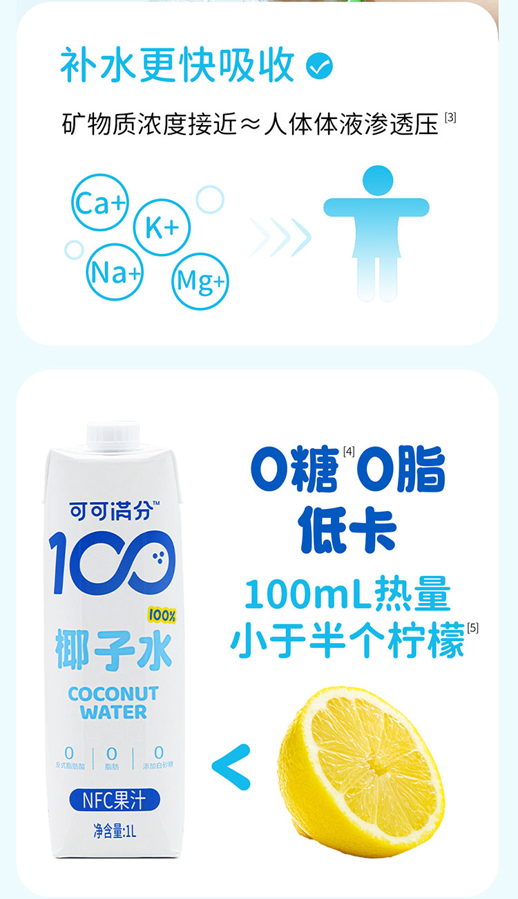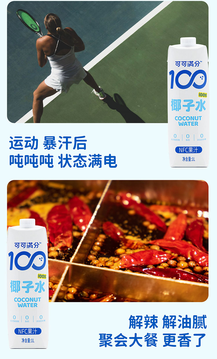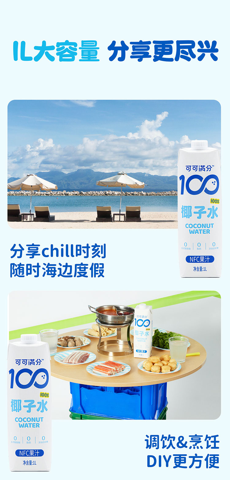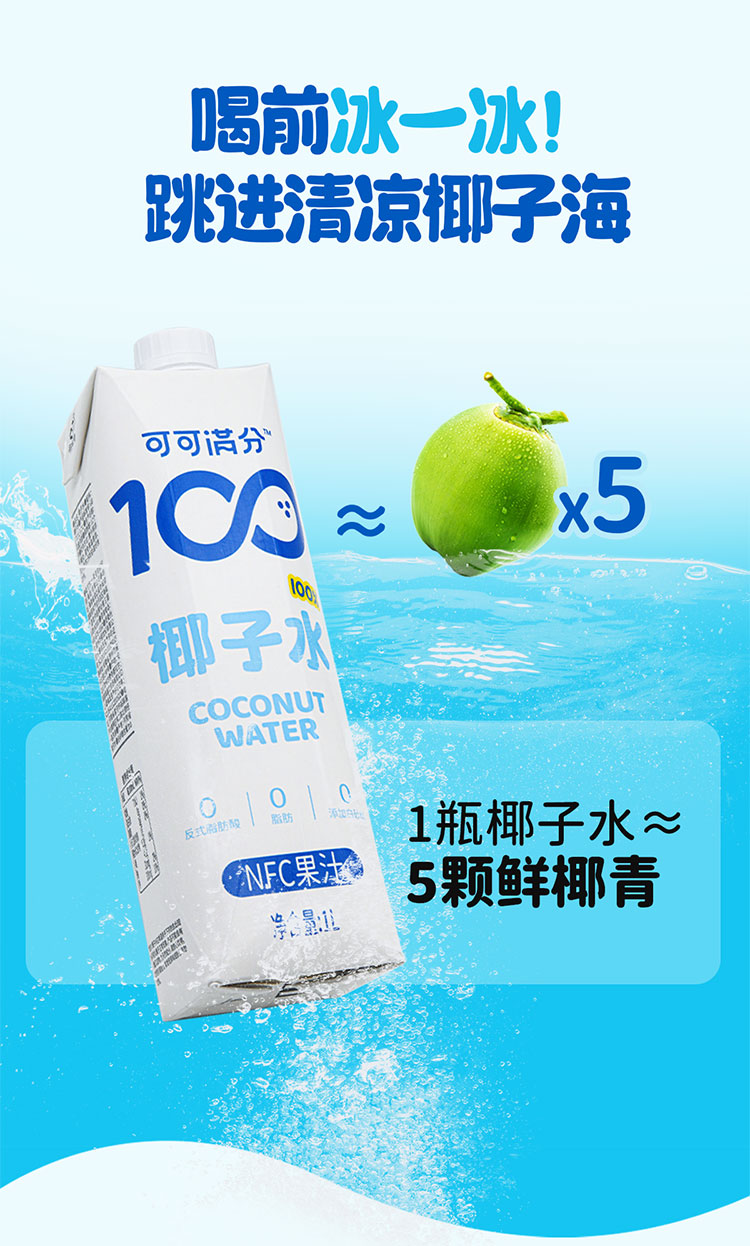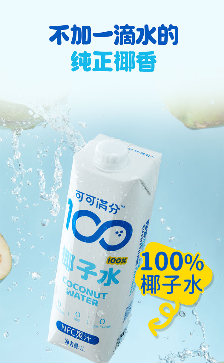 可可满分 椰子水 1L 3瓶装/6瓶装