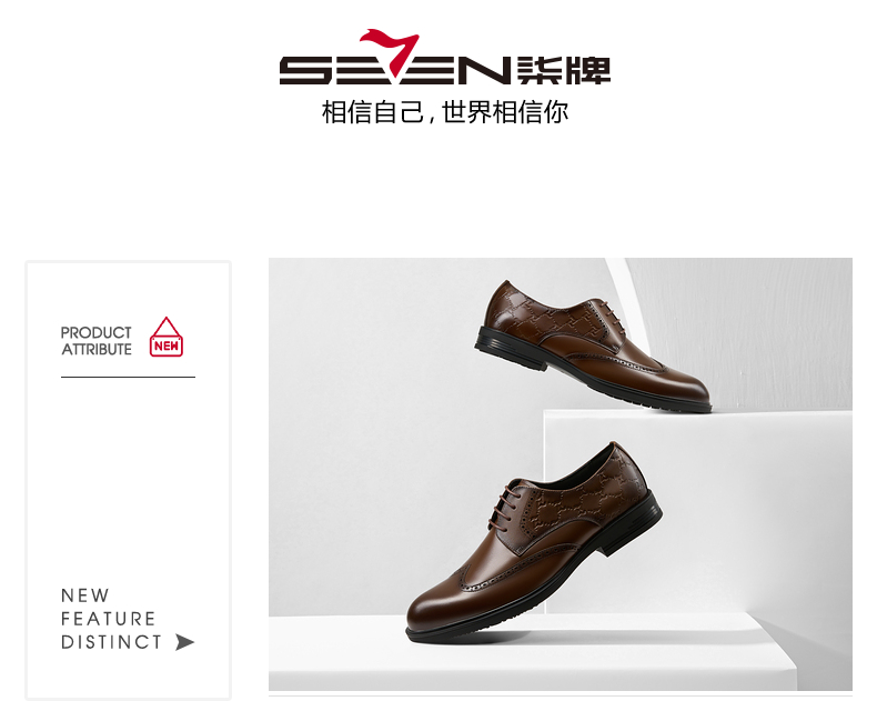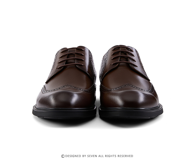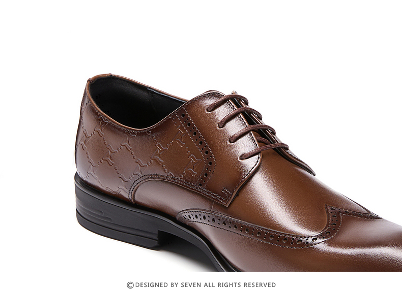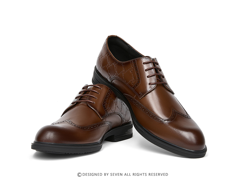 柒牌男鞋商务正装男士皮鞋2024新款真皮圆头新郎结婚英伦风西装鞋 126X70320