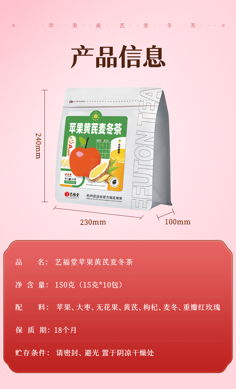 艺福堂苹果黄芪麦冬茶150g