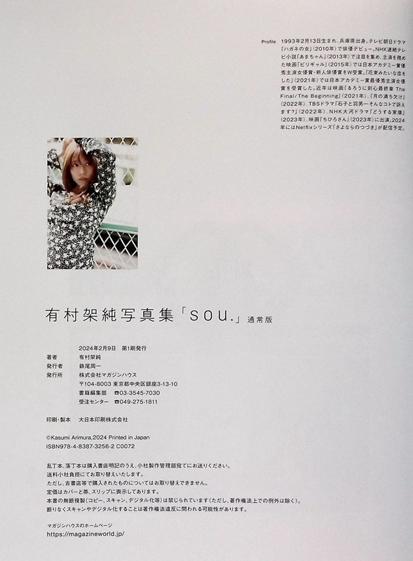 预售 【中商原版】有村架纯写真集 sou.通常版 附送特典zine小册子 日文原版 有村架純写真集 TYPEA 通常版