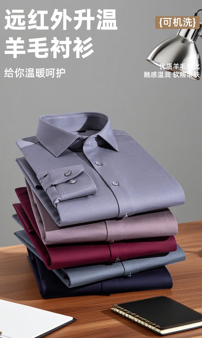 【实付满399送保温杯】【可机洗含羊毛拉绒蓄热衬衫】加厚保暖打底衬衫商务通勤长袖衬衣CT521