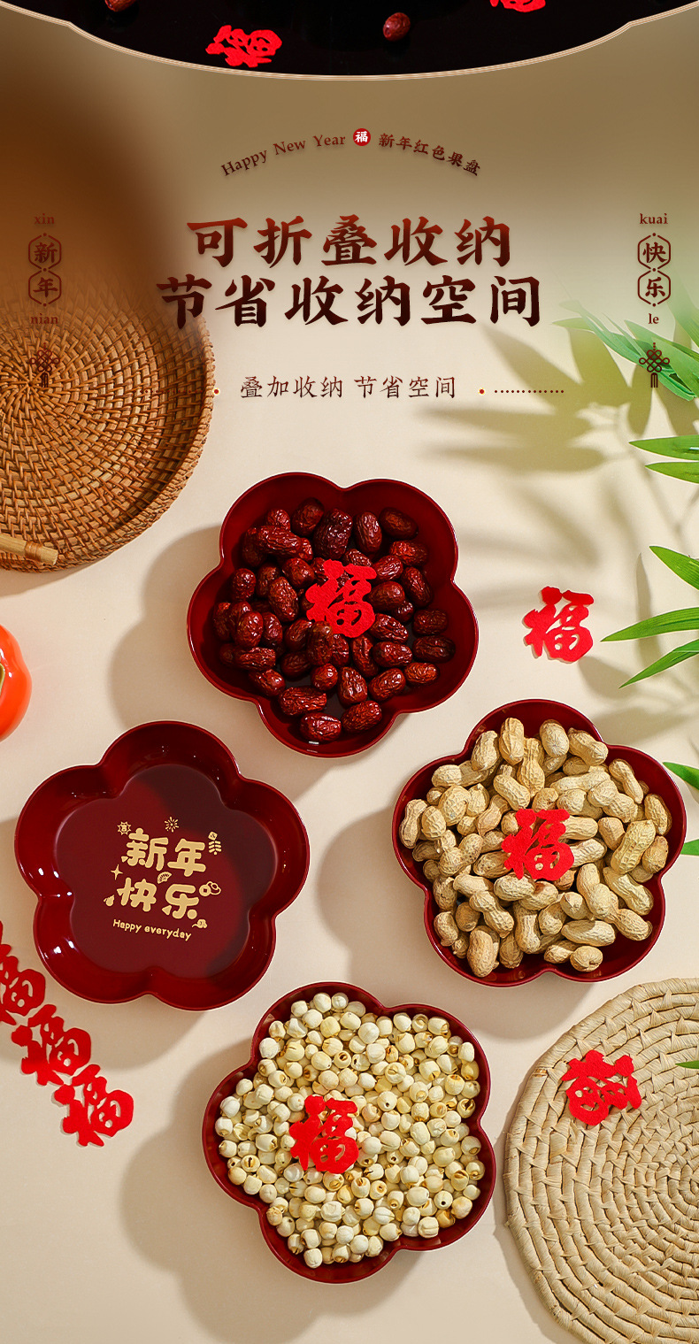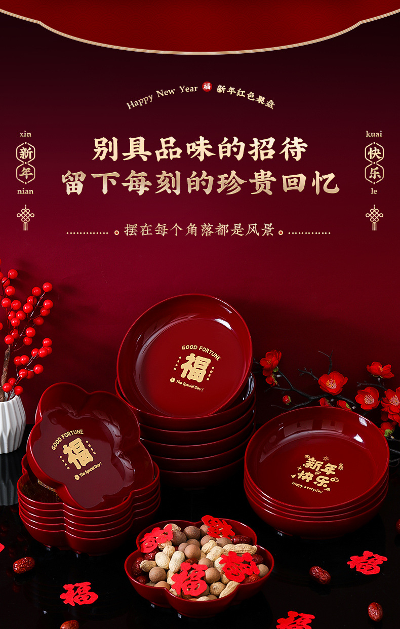 年货果盘批发新年装饰摆件搬家新房茶几家用零食托盘过年布置用品