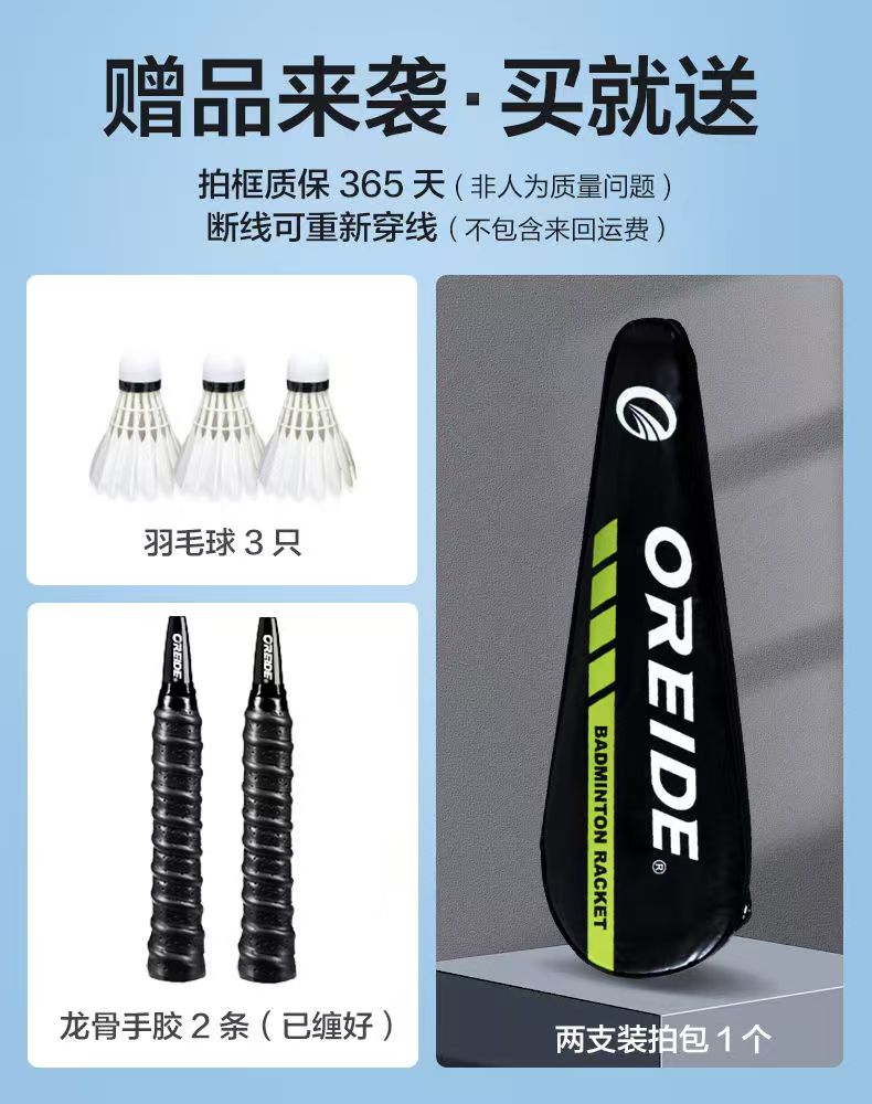 欧雷德羽毛球拍学生耐打全碳素超轻成人专业双拍套装耐用型一体拍