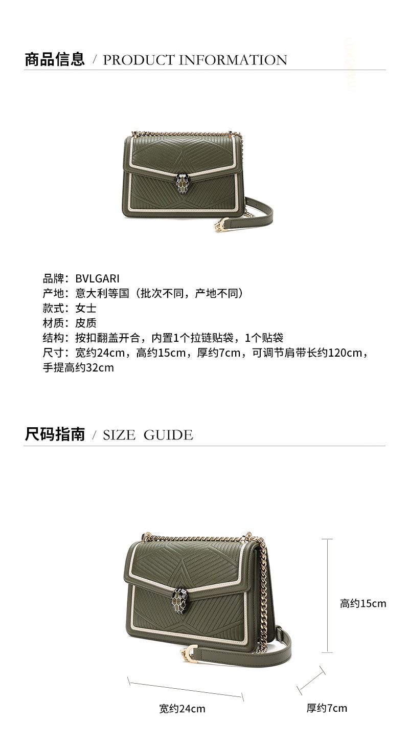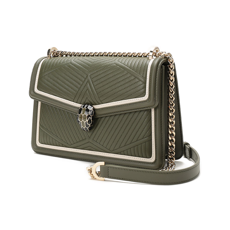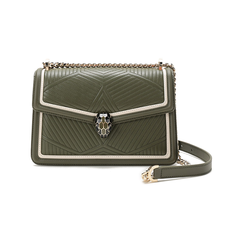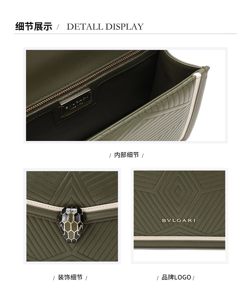 【国内现货】BVLGARI/宝格丽 女士SERPENTI DIAMOND BLAST系列皮质蛇头扣绗缝手提单肩斜挎包 289731