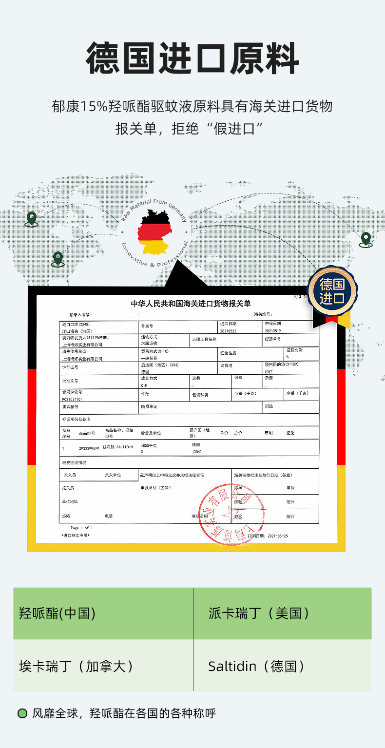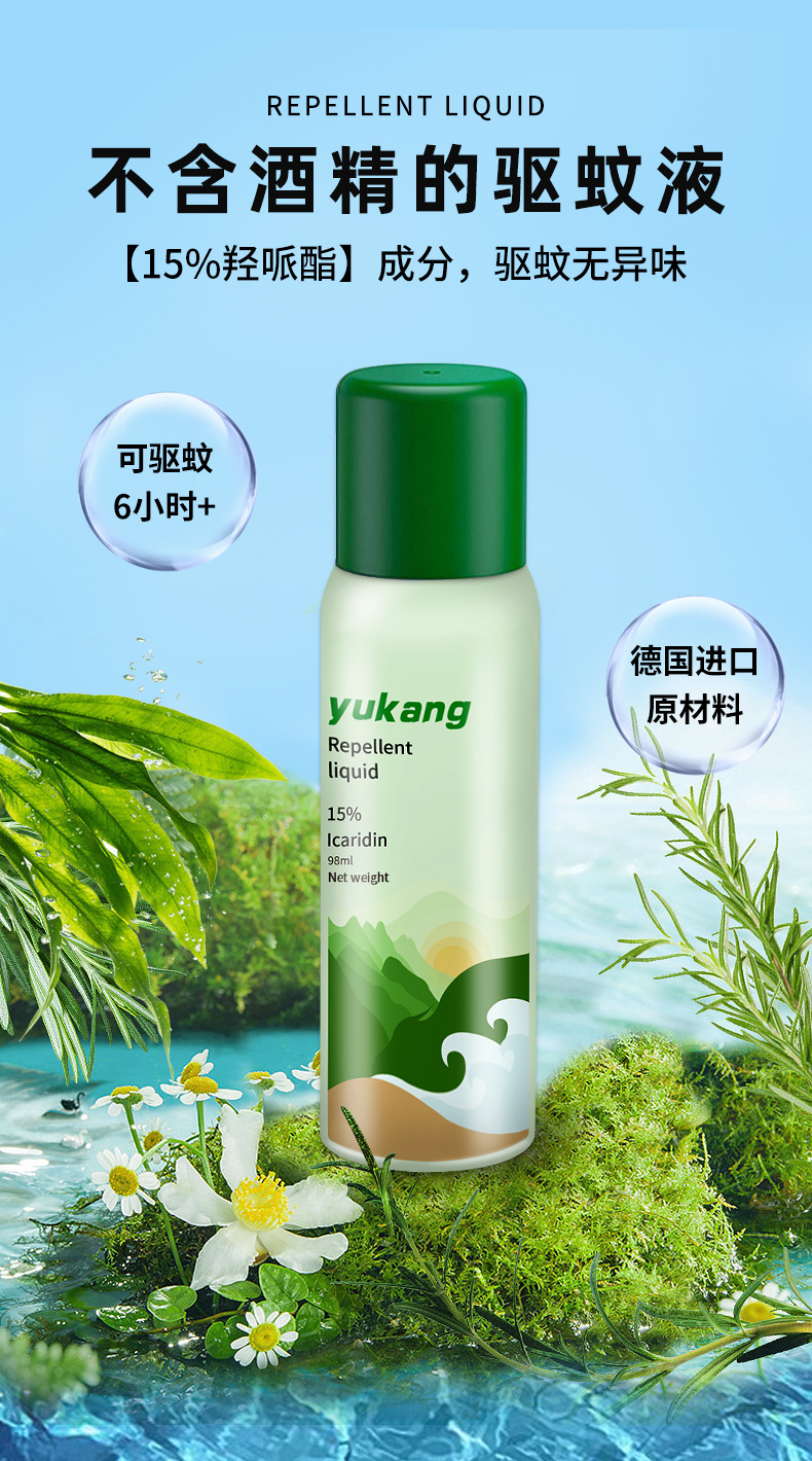 【驱蚊无烦恼】郁康驱蚊喷雾 德国进口15%派卡瑞丁 6.5小时长效驱蚊 0酒精 亲肤不粘腻 铝罐包装 98ml/瓶