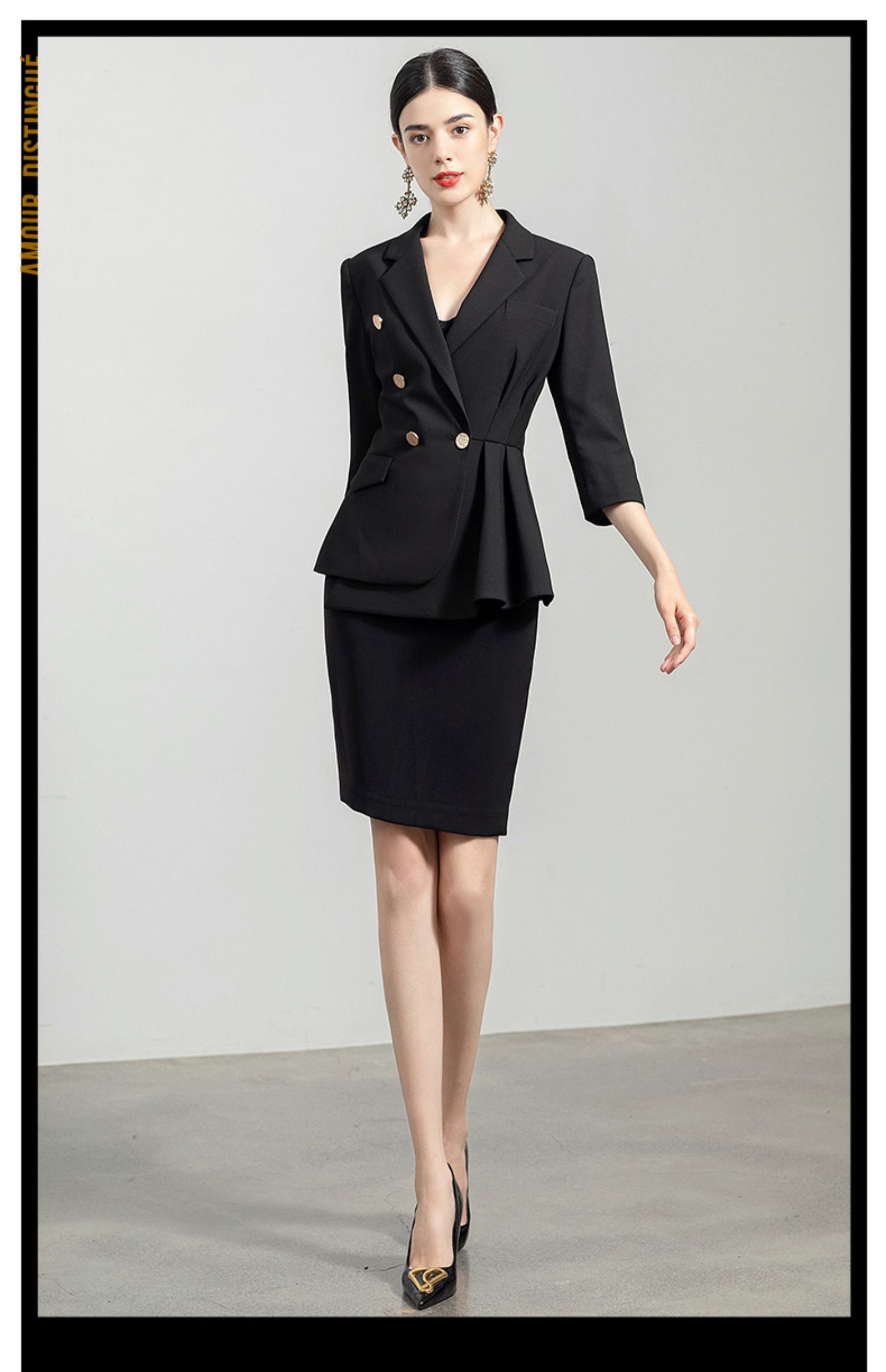 IWY/黑色职业装套装女上班OL气质教师西服商务干练正装工作服套裙C1315+S1207