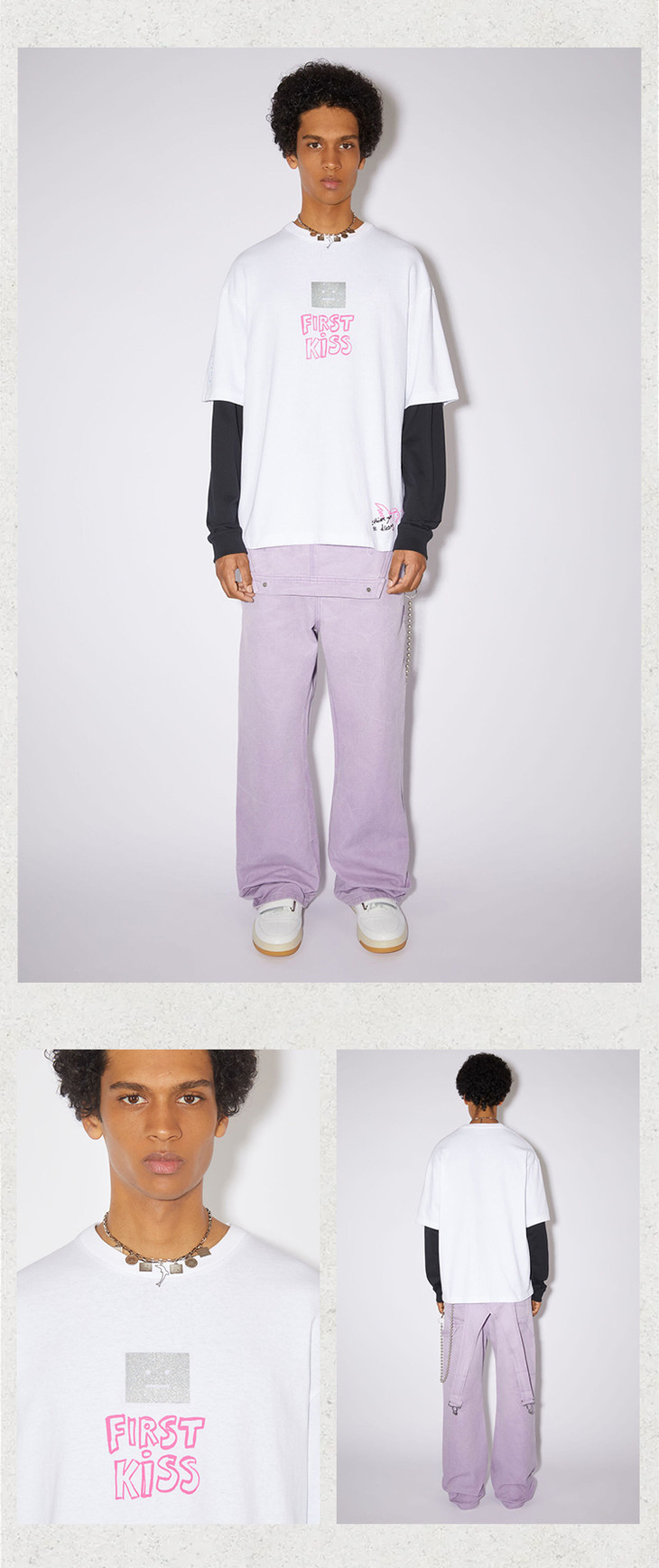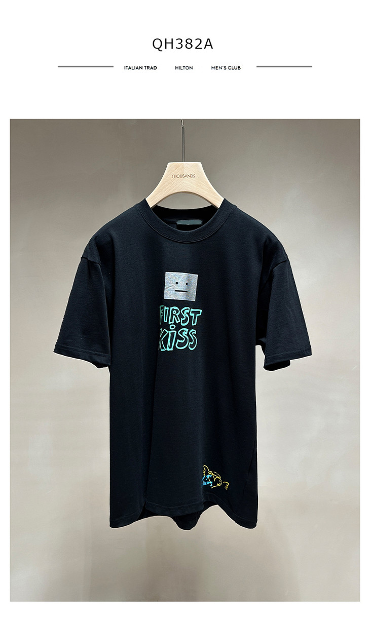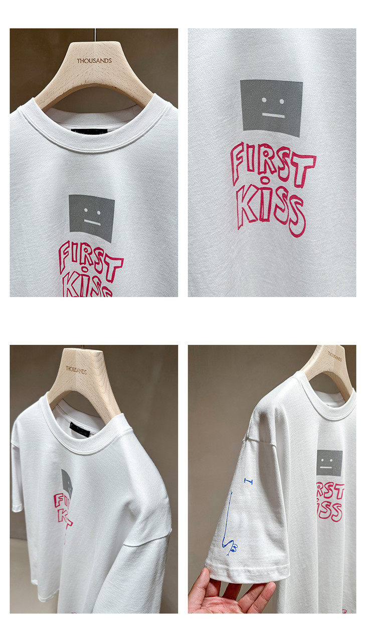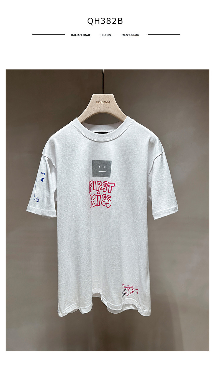 THS 7.22- 有机长绒棉/烫银笑脸印花AS宽松T恤-男女版 QH382