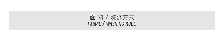 洗护建议: 可水洗 不可使用碱性洗涤剂洗涤 不可漂白 不可翻转干燥 不可干洗 低温熨烫 悬挂晾干